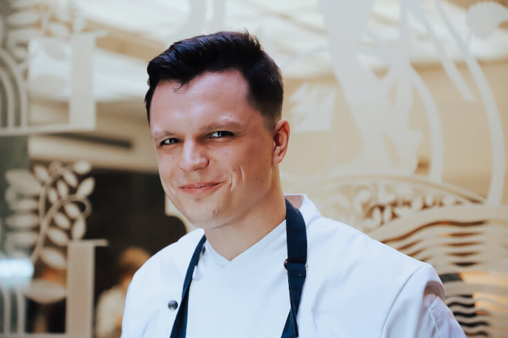 Jeho rukopis je zřejmý a nelze jej zaměnit. Vytváří dokonalé pokrmy z nejčerstvějších surovin, které nejsou dovážené přes půl světa. Celé menu domovské restaurace La Rotonde se proměňuje tak jako celý gastronomický směr hotelu Alcron. S jeho příchodem nastává v gastronomii hotelu Alcron zcela jiné smýšlení. Dokonalost na talíři podtržená reálným příběhem, který uchvátí každého.