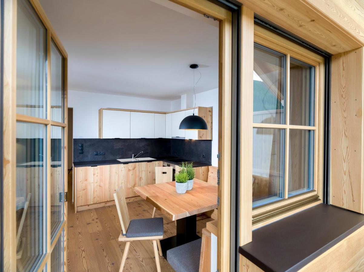 Dříve bydleli blíže centra obce vedle kostelní věže, odtud i název usedlosti – starého kostelníka… Teď tam roste stavba domu s 19 apartmány. „Bude to drahé, až moc komfortní, místní na ně nemají. Raději bych viděl byty pro ně,“ zavrčí Toni. Vlastní dům dostavěl před třemi lety. „Podlahy jsou ze dřeva z našeho lesa. Sám jsem je opracoval a dovezl,“ ukazuje a pohladí rukou mohutný stůl. Podle pravidel Roter Hahnu nabízejí pět apartmánů, všechny v moderním a úsporném designu, dřevěný interiér doplňují jen skleněná okna, osvětlení a přepážky v koupelnách. „V létě míváme plno, jezdí k nám často stejní hosté, kteří si to tady oblíbili. Pokud mají podobně staré děti jako my, nemůžeme se nikdy rozloučit,“ vypráví Marlene. Z apartmánů pochází jen menší část jejich živobytí.