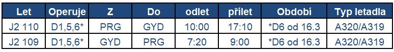 Pro poptávky garančních míst nebo skupinových poptávek na letech na sezonu 2024 kontaktujte na prg.azal@blueskytravel.eu