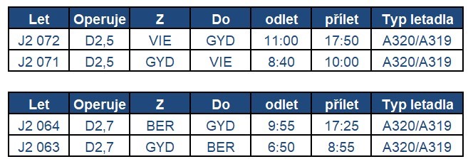 V rámci dalších odletů je možné používat linky z Vídně a Berlína