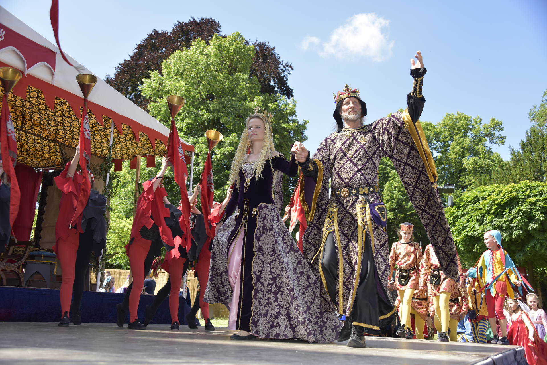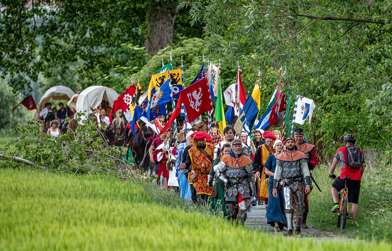 První červnový víkend bude patřit 17. ročníku Královského průvodu. Jeho slavnostní příjezd oznámí lidu nejprve trubači, poté bude slyšet víření bubnů a zanedlouho všichni spatří vlající praporce, jízdu na koních, historické vozy tažené koňmi, vyšňořené rytíře císařovniny gardy a lid urozený a prostý. Tito všichni budou císařovnu doprovázet na její pouti za uzdravení jejího manžela a svého krále krále Karla IV. Při slavnostním přivítání shromážděný lid pozdraví sama císařovna Eliška, vévoda Štěpán II. bavorský a arcibiskup Jan Očko z Vlašimi. Více ZDE