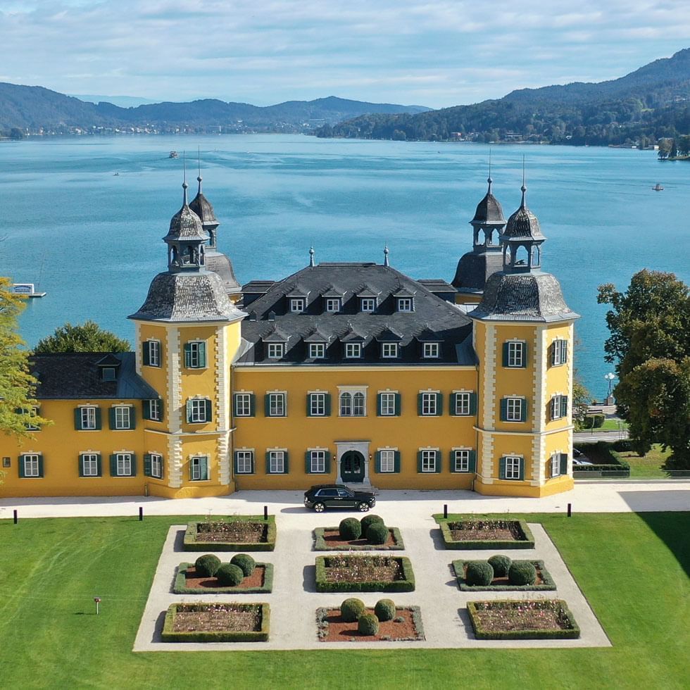 Ale vůbec nejznámější zámek v Korutanech najdete přímo na západním břehu jezera Wörthersee. Legendárním se stal mimo jiné díky seriálu „Ein Schloss am Wörthersee“ (česky Hotel u jezera), ve kterém si zahrál například i představitel Vinnetoua Pierre Brice. Žlutý renesanční zámek – hotel je symbolem elegantních lázní Velden. Mezi zdejší hosty patřili například šlechtici z Windsoru, excísařovna Soraya nebo herec Kirk Douglas, nějaký čas ho vlastnil multimilionář Gunter Sachs a nyní je jedním z nejkrásnějších hotelů široko daleko.