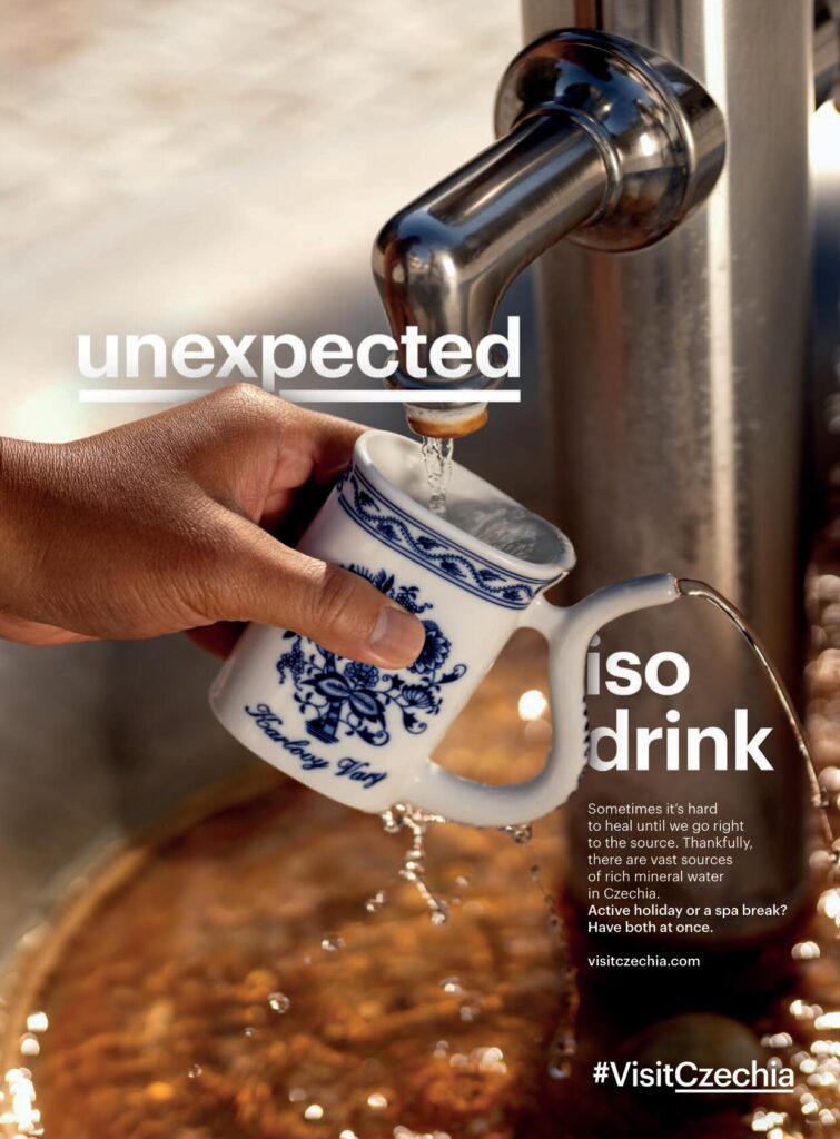 Nový komunikační koncept kampaní České centrály cestovního ruchu na roky 2024 a 2025 Unexpected Wellbeing vychází z myšlenky, že Česko jsou de facto jedny velké lázně. Je tu taková pohoda, tak krásná příroda a bohatá kultura, že i když v Česku trávíte dovolenou aktivním odpočinkem, připadáte si jako v lázních. A tak se každá lehce sportovní aktivita stává nečekanou lázeňskou procedurou. Vizuály, které primárně vznikly v angličtině, mají slogany (claimy) jako „unexpected steamroom“ u fotky cyklisty v mlze, „unexpected pedicure“ u fotky bosých nohou na procházce po skalách v lese či „unexpected aromatherapy“ u skupiny lidí, která jde po rozkvetlé louce. Kromě kampaní CzechTourism chystá i celou řadu dalších aktivit.