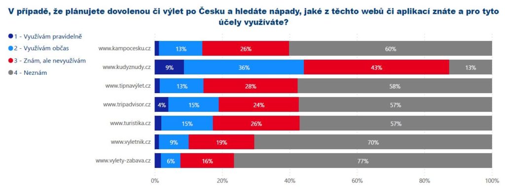 Cestovatelský portál agentury CzechTourism Kudyznudy.cz zná osmdesát sedm procent Čechů, každý druhý na něm hledá inspiraci pro plánování dovolené nebo výletu po České republice. Průzkumu společně realizovala společnost IPSOS a agentura CzechTourism.