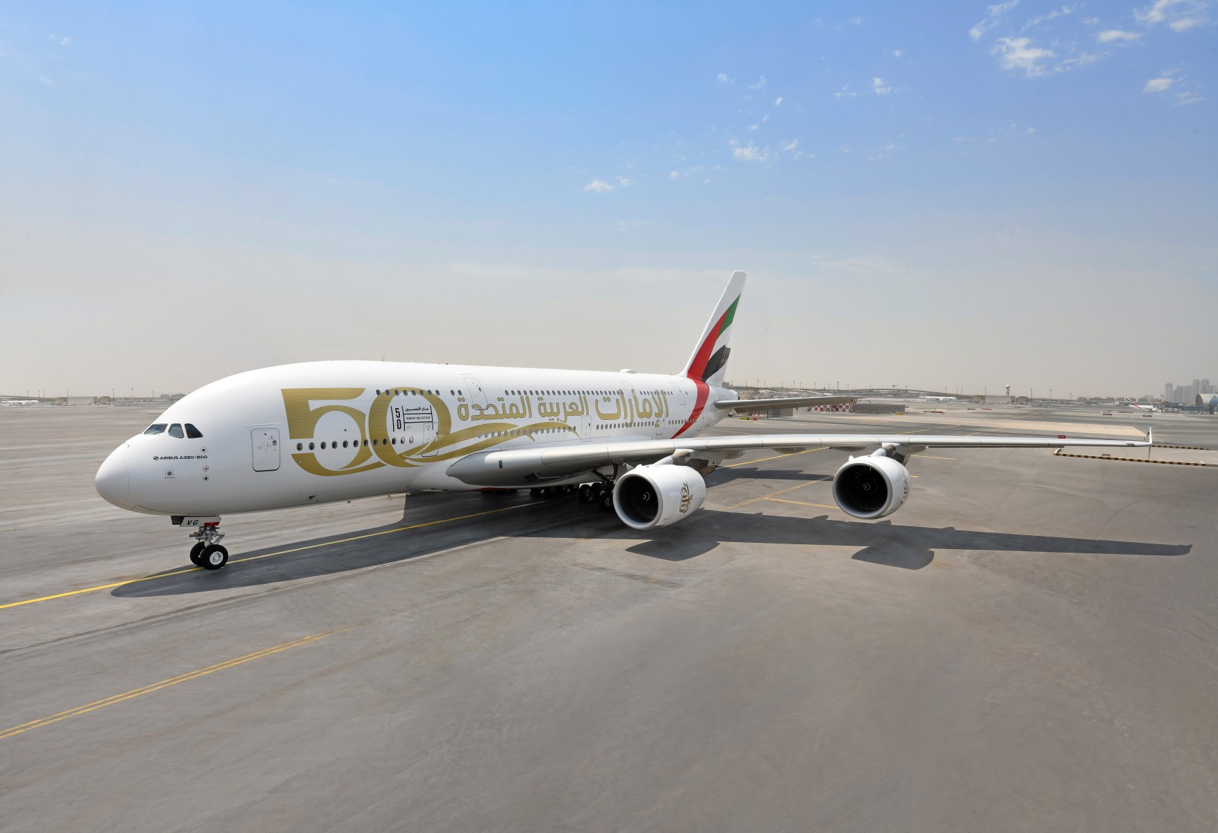 Letecká společnost Emirates si připomene jubilejní 50. výročí Spojených arabských emirátů novým přebarvením svých letadel Airbus A380 a Boeing 777-300ER. Letouny budou ozdobeny zlatým designem „United Arab Emirates 50“ v arabštině a angličtině z obou stran trupu letadla.