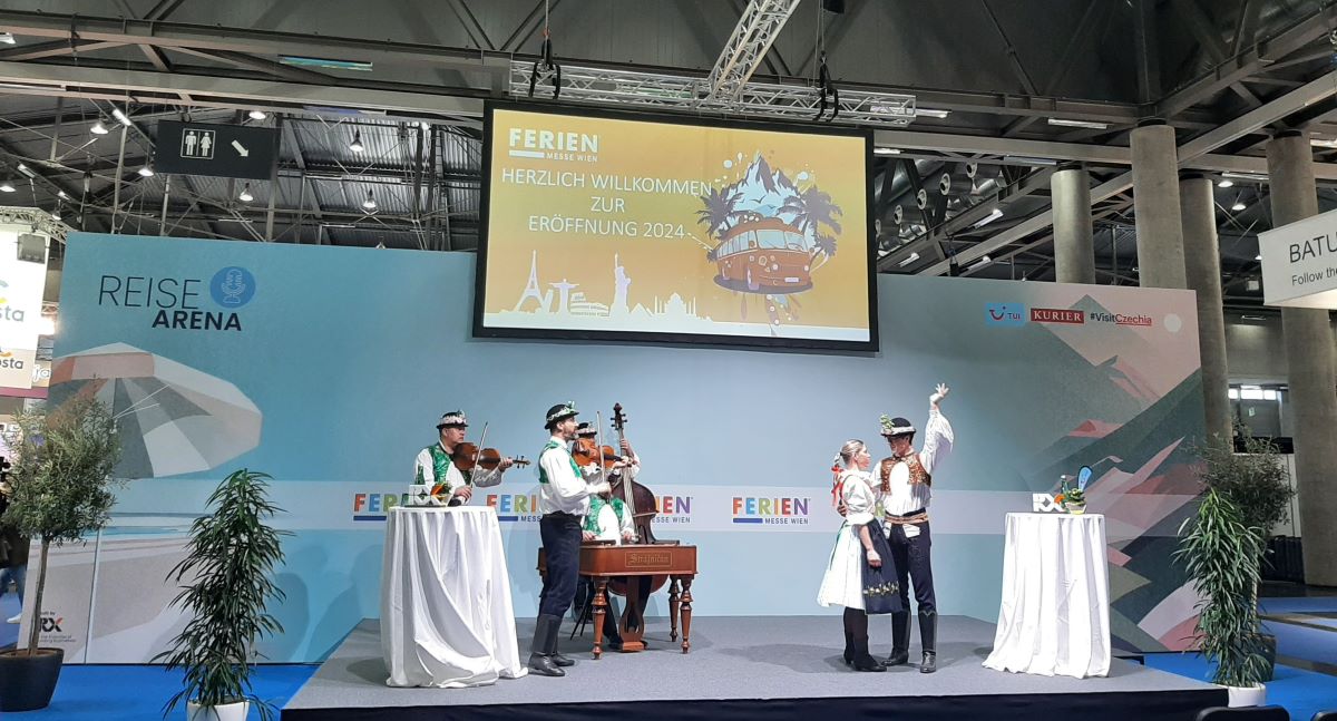 Destinaci u moře na pláži, výlety do měst a dovolenou na venkově či na horách. Takové pobyty si nejčastěji vybírají obyvatelé Rakouska. A právě ty jim na veletrhu cestovního ruchu Ferien Messe ve Vídni nabízelo ve 13 halách rekordních 450 vystavovatelů z 36 zemí. Na akci dorazilo přes 36 600 lidí a řada z nich se zastavila u českého stánku. Kromě CzechTourism se u něj prezentovalo 12 dalších subjektů. Byli mezi nimi zástupci regionů, hotelů či třeba lázní. Návštěvnici měli možnost poznat lidovou hudbu i tance v podání folklorních souborů Strážničan a Marjánka, díky obsáhlé publikaci „111 míst v Jižních Čechách, která musíte vidět“ zjistili, co při návštěvě tohoto regionu určitě nevynechat, otestovali si své znalosti o Česku prostřednictvím vědomostního kvízu nebo potěšili chuťové buňky během kulinářského kurzu vaření. Jednoduše řečeno – aktivit byla celá řada a o Česku bylo hodně slyšet.