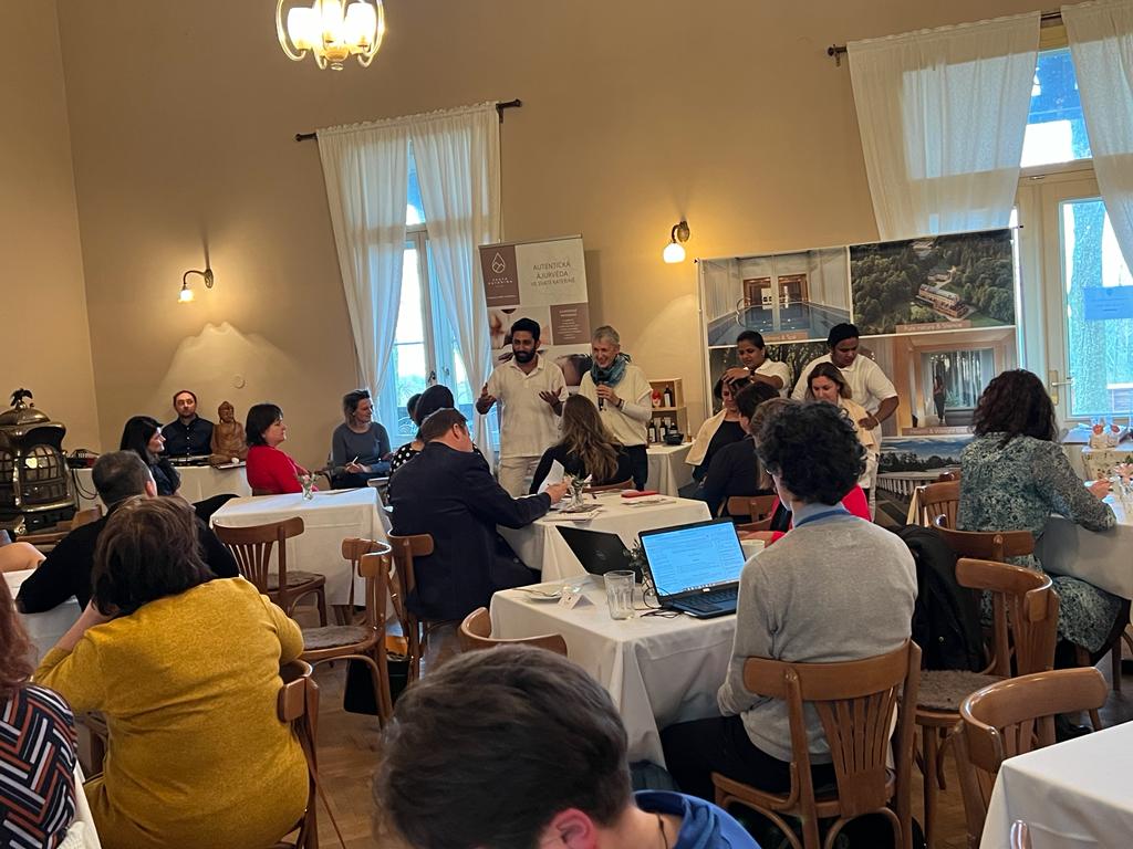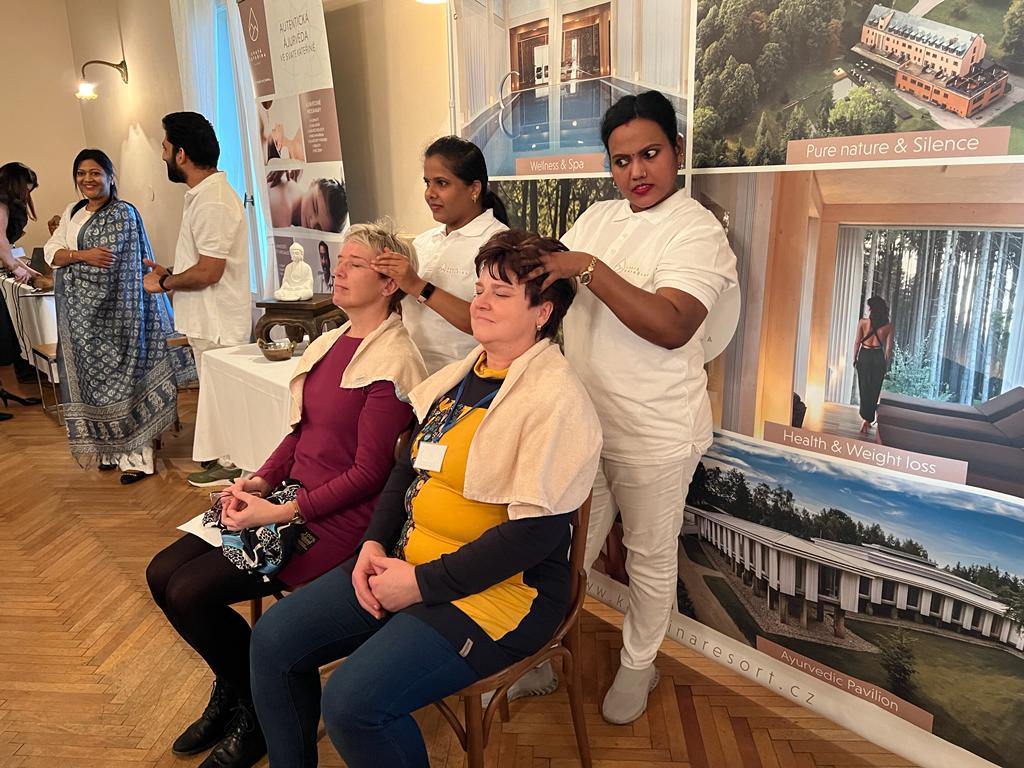 V rámci odpoledního programu nabídl Resort Svatá Kateřina prohlídky Ayurvédského pavilonu s jeho architektem Jakubem Tejklem, ukázky ayurvédských masáží a vaření i konzultace s ayurvédskou lékařkou.