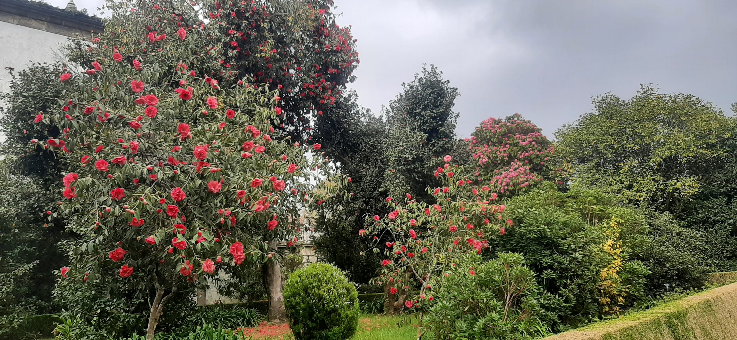 Galicijská Pazos na první pohled ničím nevynikají. Jsou však umístěny v nádherných zahradách plných kvetoucích kamélií. V tom skví právě jedinečnost galicijských okrasných zahrad. Nechybějí tu samozřejmě jezírka, sochy a vázy, umně prostříhané keře, ale to, co nejvíce přitahuje návštěvníky, jsou od podzimu do jara kvetoucí kamélie. Věcně zelená Galicie je díky jim probarvená do všech barev, a je to skutečná nádhera. Kamélie se do Galicie dostaly koncem 18. století ze vzdálených zemí, hlavně z Číny a Japonska. Původně byly vysazovány v zahradách panských sídel a honosných sídel galicijské šlechty, ale nakonec se dostaly do zahrad a farem veřejných i soukromých – v celém regionu, až se díky nim Galicie stala mezinárodní špičkou v pěstování a produkci této rostliny. V současnosti se v Galicii pěstuje téměř 8000 odrůd kamélií. Existuje i trasa za kaméliemi s možností ubytování ve šlechtických sídlech a ochutnávky vín. A každoročně v dubnu se koná ve vnitřním nádvoří univerzity v Santiagu de Compostela výstava těch nejlepších šlechtitelů.