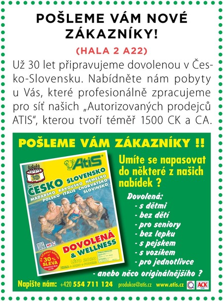 Vybírejte z nabídky tipů na kontakty s cestovními kancelářemi, zahraničními centrálami cestovního ruchu a dalšími společnostmi, z nichž mnohé najdete ve výstavních halách veletrhu Holiday World v Praze. Ty ostatní můžete kontaktovat jak během návštěvy jejich zástupců na veletrhu, tak mimo letňanské výstaviště. Všichni mají co nabídnout a těší se na spolupráci s vámi!