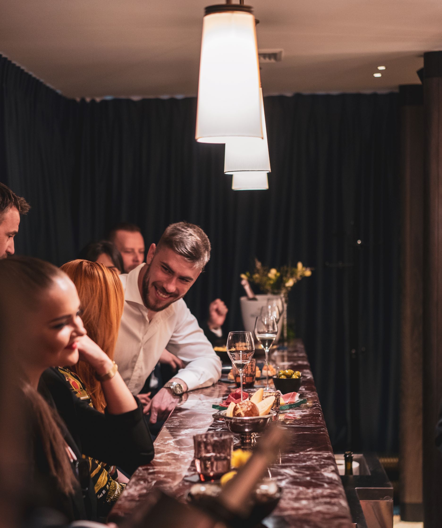 Zážitek z vína doplní oblíbené barové snacky od šéfkuchaře Lukáše Hlaváčka, mezi které patří např. ústřice fine de claire, dále francouzské či italské uzeniny, klasický tatarák či z lososa, kuřecí játrová paštika, francouzské sýry, oblíbené olivy nebo domácí hranolky se strouhanými lanýži a lanýžovou emulzí.