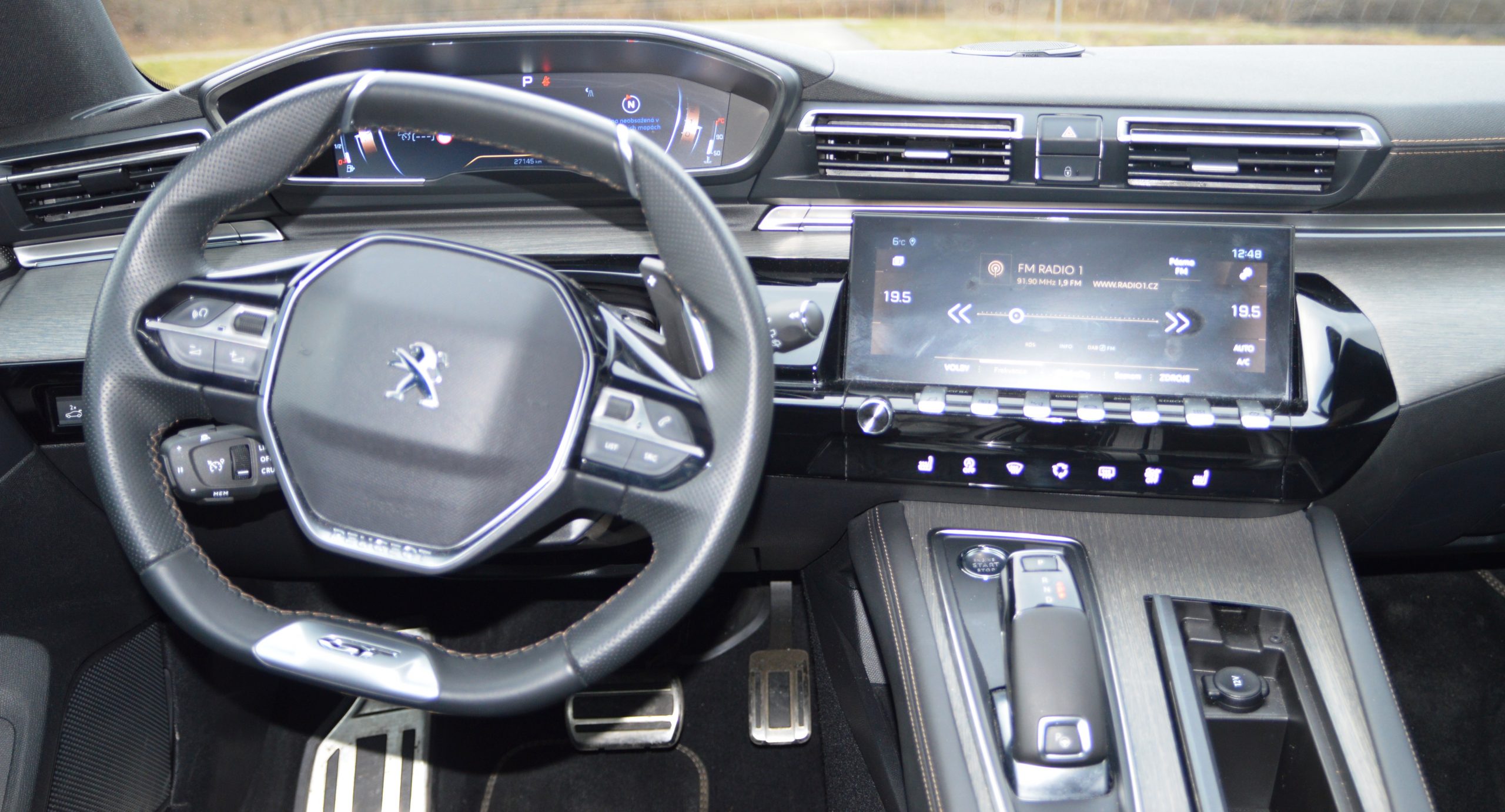 Sportovní charakter podporuje nízké usazení řidiče (vůz je 53 mm nižší než předchozí verze) i malý, perfektně padnoucí volant. Na ergonomických sedadlech, nabízejících i masážní kúru, si můžete uložit do paměti ideální polohu. Ovládání i-cockpitu kombinuje plynule tlačítka s dotykovým desetipalcovým displejem, integrovaným do palubní desky těsně nad středovým panelem – takže nevyčnívá do výhledu jako u mnohých jiných aut. Bohatou chytrou elektroniku s pestrými asistenčními službami pro bezpečnost včetně infračervené kamery doplňuje hi-fi premium systém Local s deseti reproduktory. Hodně zaujala automatická regulace světel, přisvícení do zatáčky, nebo přepínání dálkovek.
