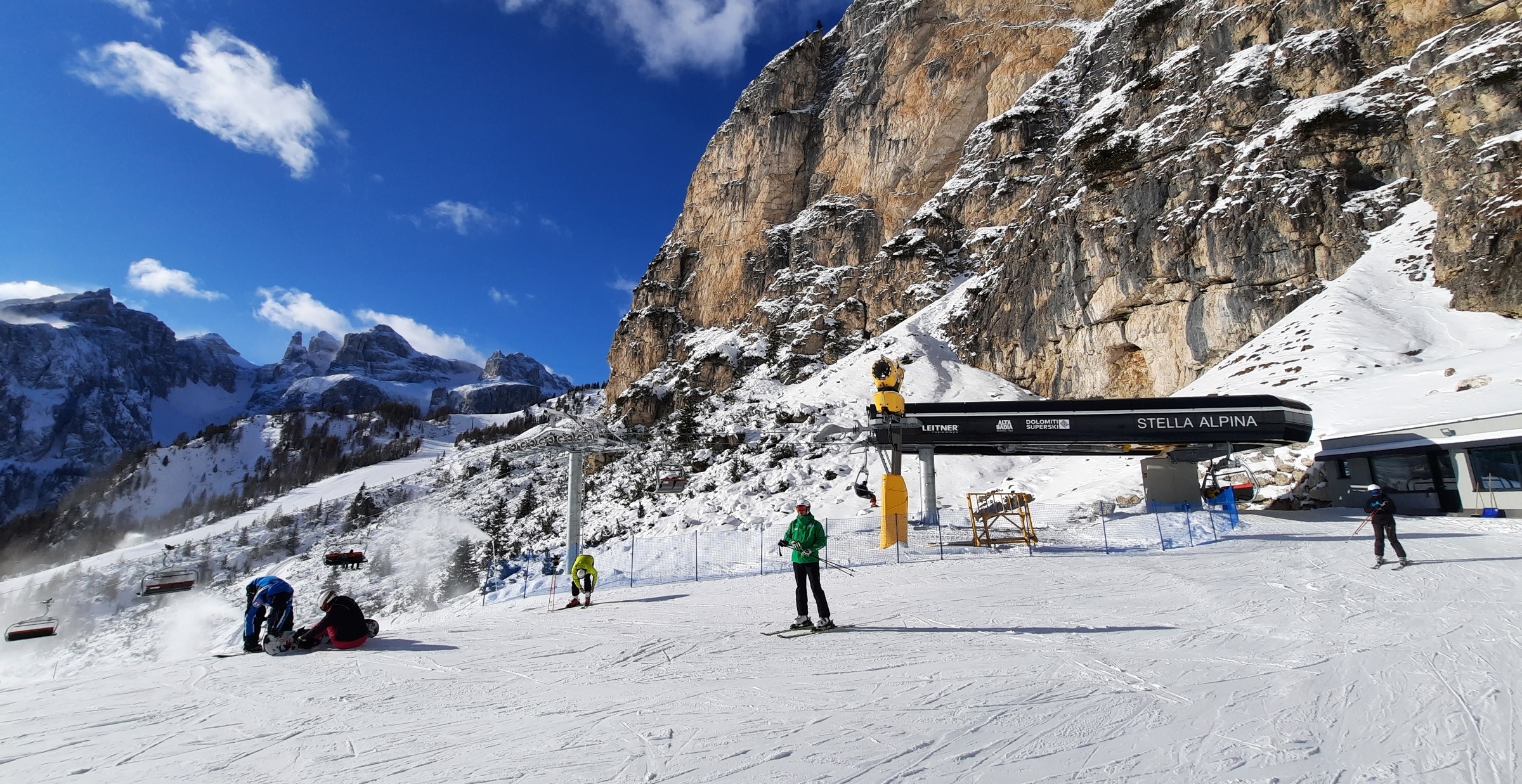 Sjezdovky i hotely jsou zaplněné o něco méně než v předchozích letech. Hlavně Italy, Němci a Rakušany, kteří doma v čase lockdownu sice směli lyžovat, ale nemohli se v horských střediscích ubytovat. Občas zaslechnete polštinu, mnohem více češtinu – lyžují dětské závodní týmy, rodiče nebo prarodiče s potomky, ale i celé kamarádské party. Nizozemci a Britové naopak zatím chybějí. „Lidí bude určitě přibývat, teď je všude zaplněno tak ze dvou třetin. My máme ale obsazeno až do konce zimy,“ potvrdil až nečekaně recepční v Ladinii, nejstarším hotelu v Corvaře.