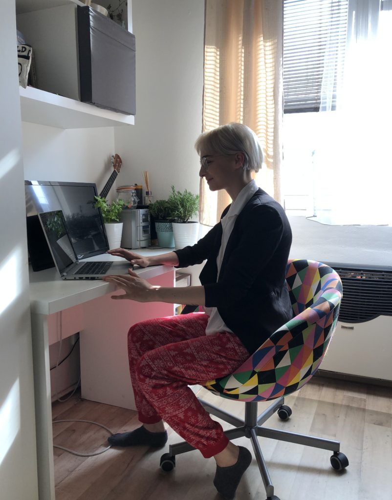 Jistě vás už napadlo, že při onlině poradu s kolegy, není úplně nejlepší, když vás ostatní vidí v týden vytahaném pyžamu s účesem ve stylu „rozcuch ráno po mejdanu“. Co tedy na sebe? Odpověď je celkem jasná: „Oblečte se tak, jako se oblékáte na běžné pracovní porady.“