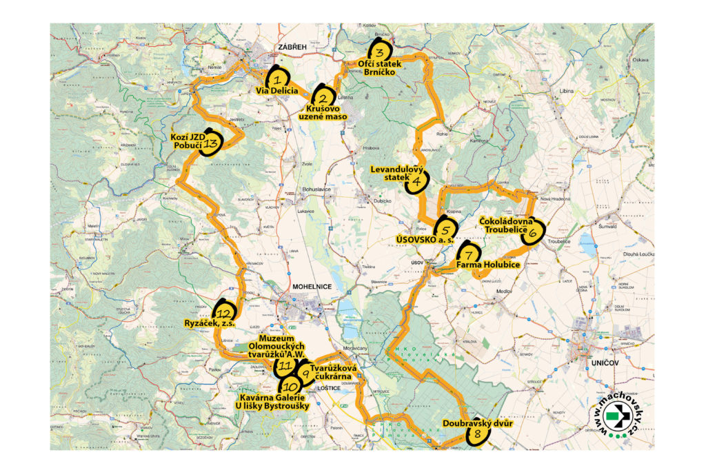 Vede venkovskou krajinou a nabízí nevšední gurmánské zážitky. Zbrusu nová cyklotrasa Ochutnej Moravu na kole omámí turisty vůní a chutí tvarůžků i originálních syrečkových produktů, cyklisty zláká kvalitní čokoládou, zmrzlinou, vynikajícími ovčími sýry a řadou dalších podomácku vyrobených pochoutek.