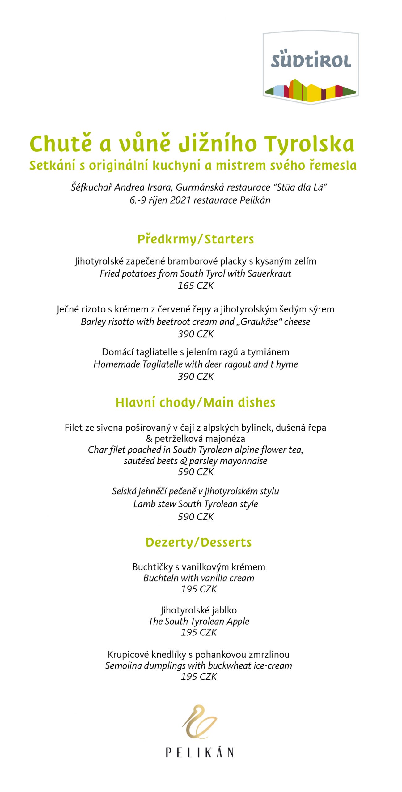 Více o Jižním Tyrolsku se dozvíte na www.suedtirol.info a o restauraci Pelikán na www.restauracepelikan.cz