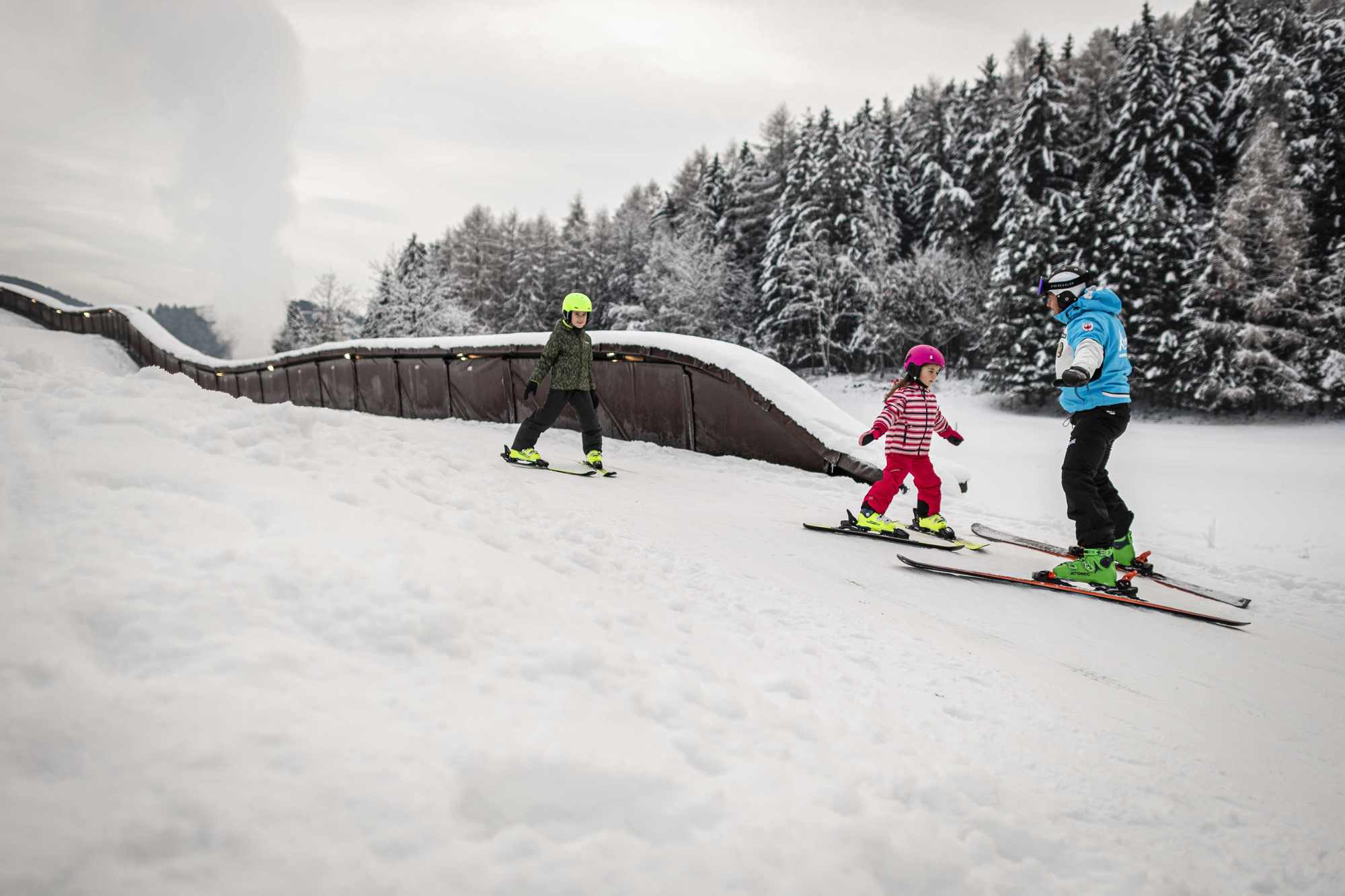 Pokud se sem vydáte s teenagery, nabídněte jim – zajisté až po řádné lyžovačce – i e-sports hernu. Za kvalitními sjezdovkami musíte kousek dojet, ať už vlastním vozem, anebo zdarma a pohodlně skibusem či vlakem, který má zastávku přímo před hotelem. Na dolní stanici Percha pro Kronplatz jste stejně rychle jako tím autem. Podobně ve Vierschachu, nástupu do areálu 3 Cime Dolomites. V lyžácích a bez poplatků za parkovné… Spíš přece jen tím autem jste za patnáct minut v areálu Girtschberg-Jochtal a za pětadvacet v nesmírně zábavném ahrntalském Speikbodenu – tam si můžete dát na začátek/závěr pobytu jednu noc v iglú.
