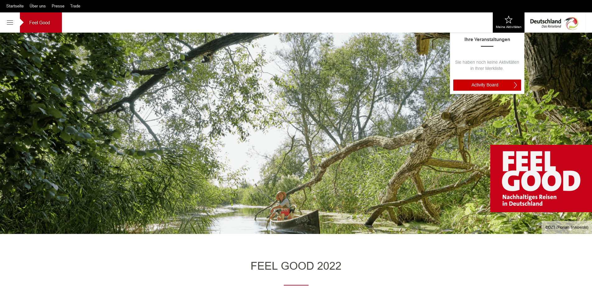 Pandemie covid-19 celosvětově zvýšila povědomí cestovatelů o respektu k přírodě i místním obyvatelům. Na významu nabývá také zájem o neporušenou přírodu a šetrné využívání zdrojů. Německá turistická centrála (DZT) reaguje na tento vývoj potřeb zákazníků a spouští v roce 2021 kampaň Feel Good. Na 14 trzích propaguje širokou řadu produktů udržitelného turismu v Turistické zemi Německo.