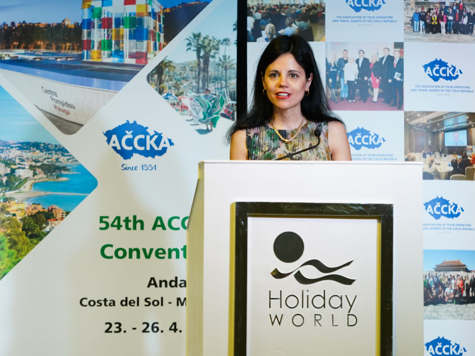 Úvod konference patřil španělským partnerům. Paní Rocío Martín, rada pro cestovní ruch a ředitelka španělské kanceláře pro cestovní ruch pro země střední Evropy Turespaña, se ohlédla za posledními nelehkými roky: „V roce 2019 navštívilo Španělsko podle statistik leteckých společností a hotelů přes 420 000 českých turistů. Potěšitelné je, že v roce 2022 to po covidové pauze bylo přes 483 000 hostů z České republiky. V letošním roce, povzbuzeni výsledky za první tři měsíce, kdy do Španělska přijelo již 75 000 českých turistů, odhadujeme příjezdy z ČR na půl milionu osob.“