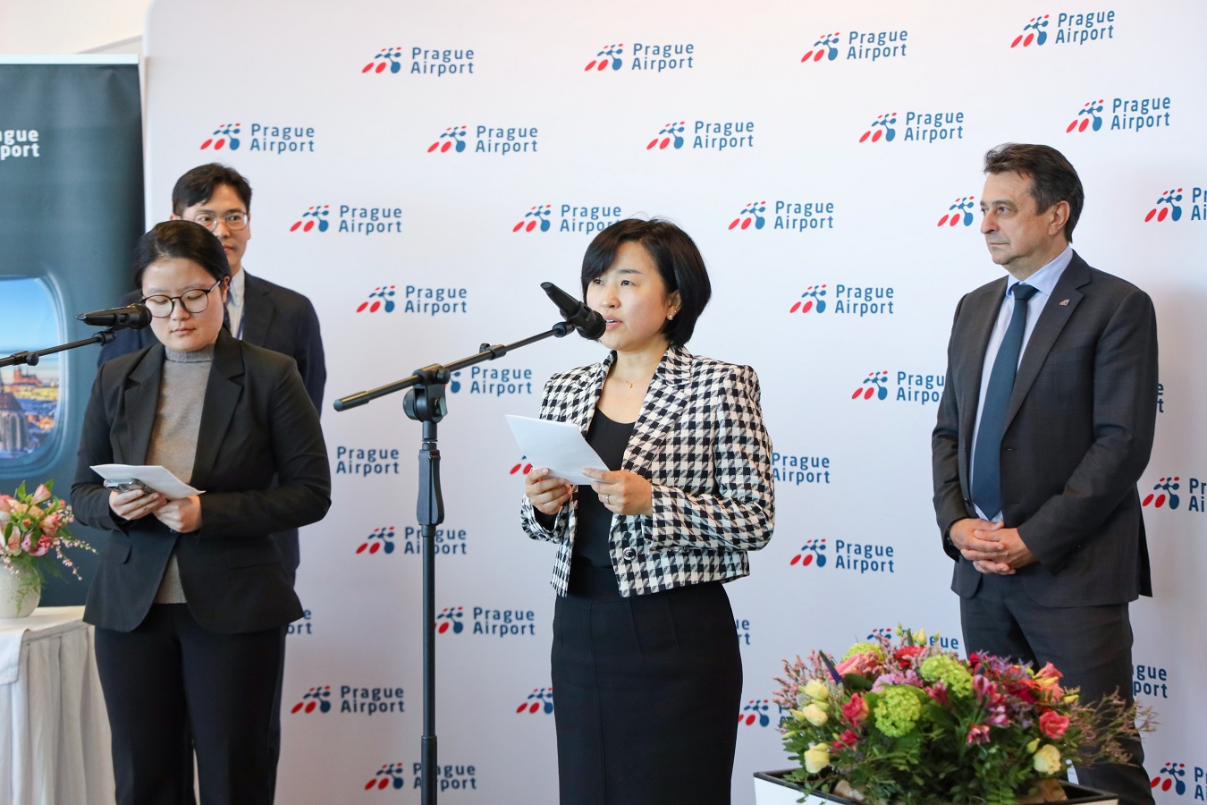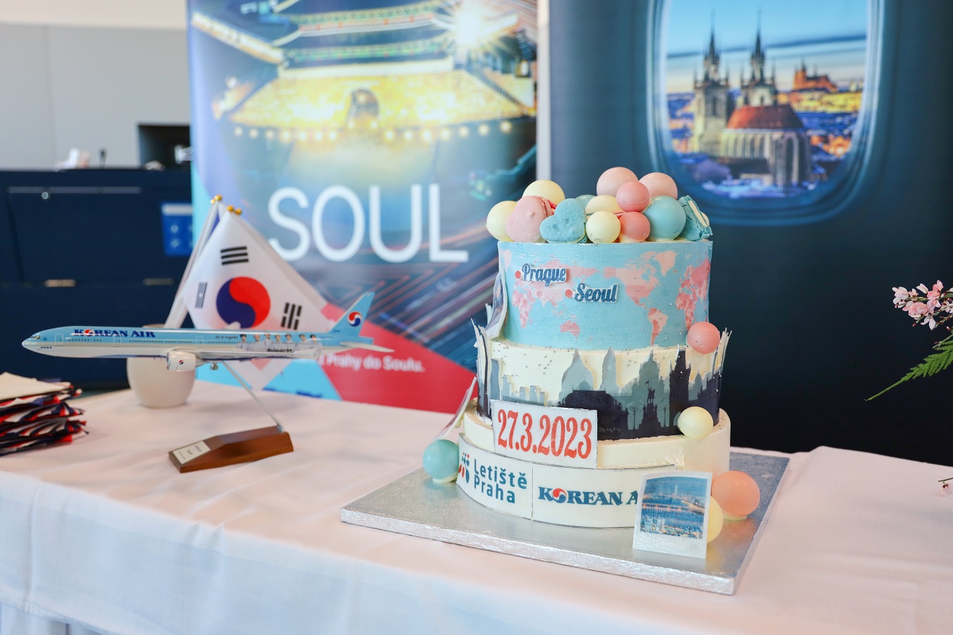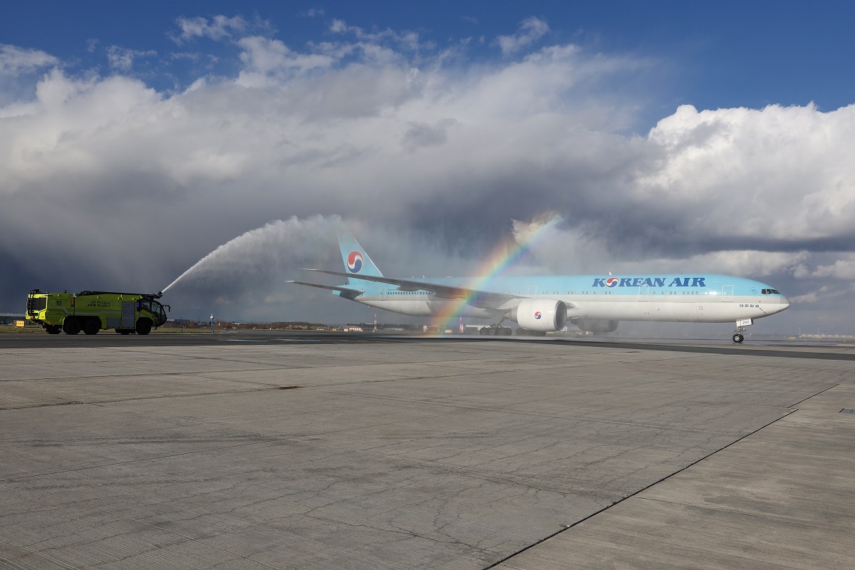 Každé pondělí, středu a pátek bude dopravce Korean Air spojovat Prahu a jihokorejský Soul. Přímé spojení s Asií odstartovalo na Letišti Václava Havla Praha inauguračním letem za přítomnosti významných hostů nejen z oblasti letectví. Postarali se o symbolické přestřižení pásky. Letištní hasiči letoun Boeing 777-300ER pro 291 cestujících přivítali slavobránou.