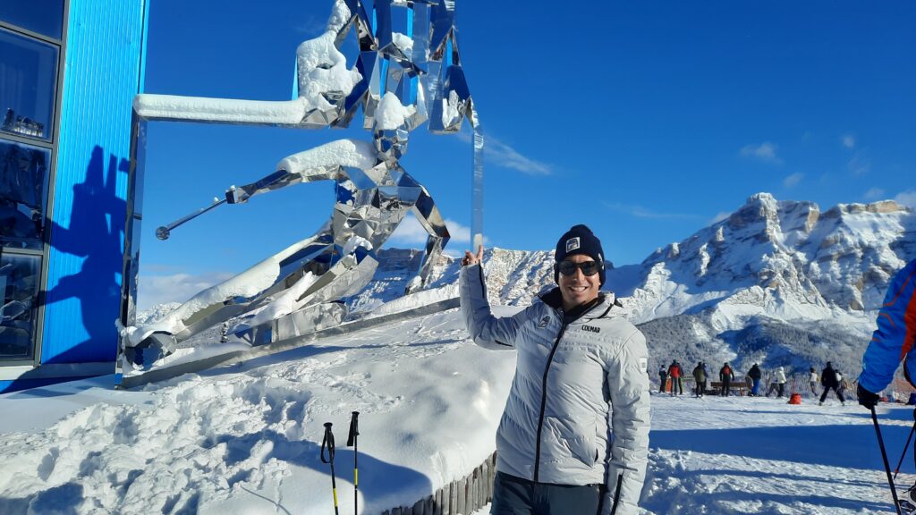 Dbá se tu hodě na rozumnou udržitelnost ve všech směrech. „Sto procent energie na provoz lanovek a vleků máme pokrytý z přírodních zdrojů, fotovoltaiky nebo hydroenergie. Veškerá voda použití na umělé zasněžování bez aditiv se na jaře vrátí zpátky do přírody,“ ukazuje hrdě Andy Varallo, prezident Dolomiti Superski, největší sítě lanovek na světě, kam Alta Badia také patří. Stojíme na vrcholu Piz La Ila pod sršatou stříbrnou plastikou Giganta. Lyžaře, kterého nechali postavit na počest všem místních, kteří se podílejí na organizaci světového poháru a tím šíří slávu místa do světa.