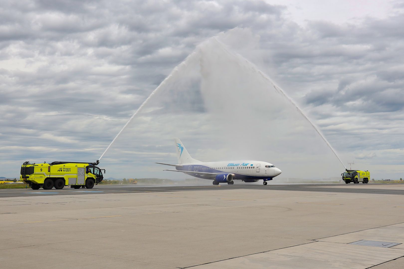 Blue Air bude provozovat přímé lety postupně až pětkrát týdně. Nové spojení mezi hlavními městy bylo slavnostně zahájeno a letadlo typu Boeing 737-500 s registrací YR-BAG bylo po přistání na Letišti Václava Havla Praha přivítáno tradiční vodní slavobránou v podání letištních hasičů.