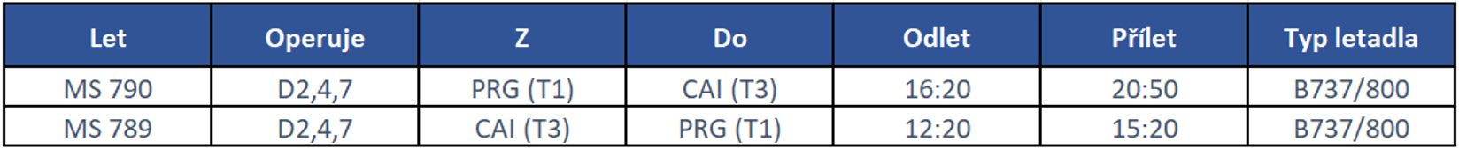 PRAHA – KÁHIRA – PRAHA – od 9. července 3x týdně