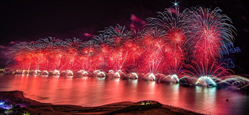 Emirát Ras Al Khaimah, který je již držitelem několika světových rekordů za své proslulé ohňostroje, přivítal nový rok 2023 fascinující pyro-hudební show, při níž se podařilo dosáhnout dvou rekordů v rámci GUINNESS WORLD RECORDS™.