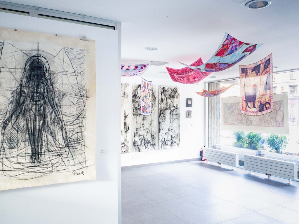 „Výstava diváka pohltí hned u vstupu, kdy zažívá paletu emocí – konfrontován s Josefovými velkoformátovými kresbami v odstínech černé a bílé, všímajíc si moře mých vznášejících se hedvábných šátků plných barev nad hlavou,“ komentuje výstavu Andrea Vytlačilová.