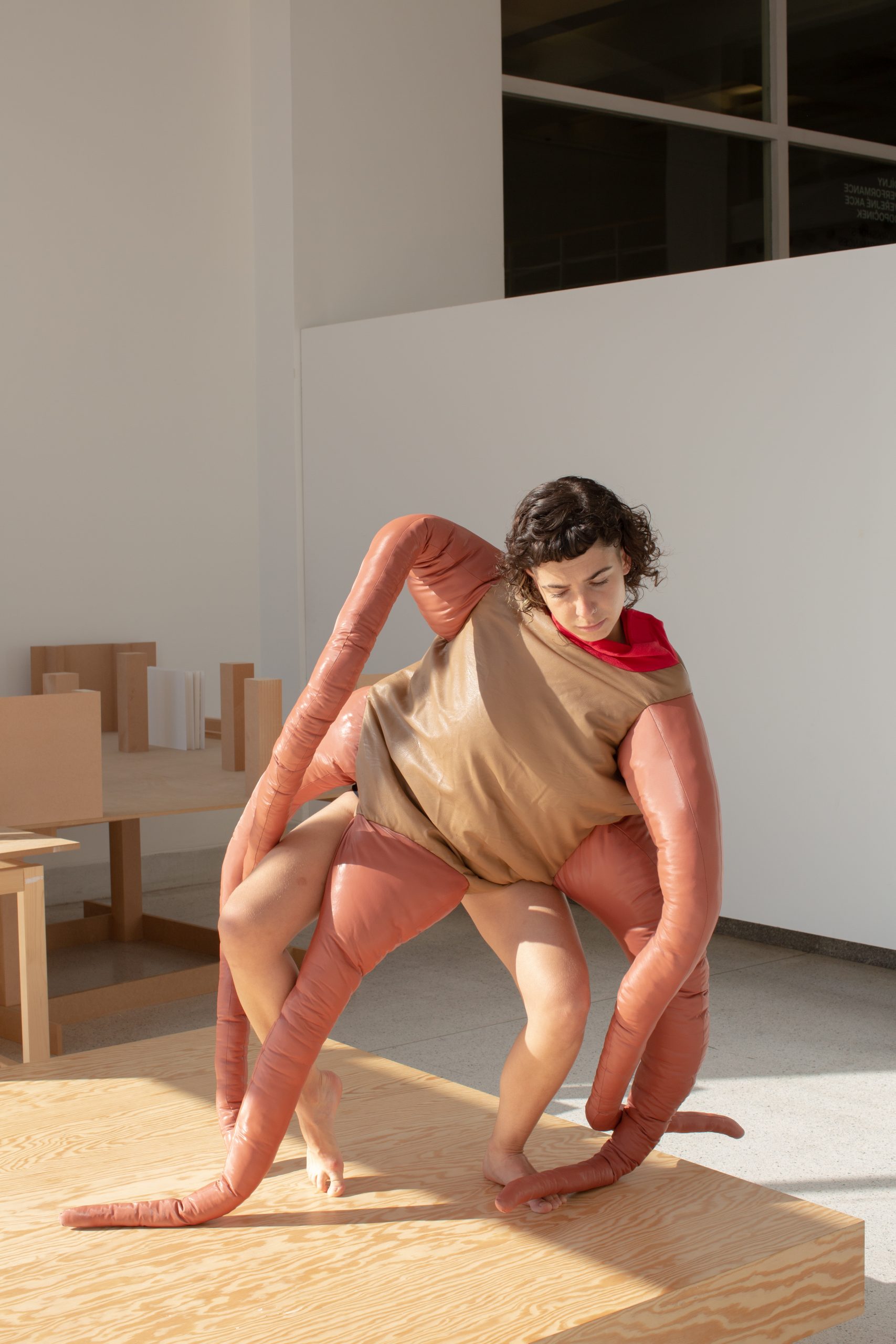 Výstava Moje tělo není ostrov má podobu obrovského těla, částečně rybího a částečně lidského. Návštěvníkům zprostředkovává nesčetné množství příběhů, jejichž podmanivá litanie se rozléhá celým výstavním prostorem. Díky své nevyzpytatelné, znepokojivé povaze a způsobu, jakým se odhaluje jako pohlcující krajina, je přístupná všem, kteří jsou ochotni jí naslouchat. Po dobu trvání výstavy bude instalace každé sobotní odpoledne obývat a aktivovat performerský tým. Ten se s veřejností podělí o nejrůznější příběhy: o dítěti šikanovaném ve škole, o krevetě vařené zaživa nebo o keři vytrženém ze svého původního prostředí, aby byl znovu vysazen na předměstí.