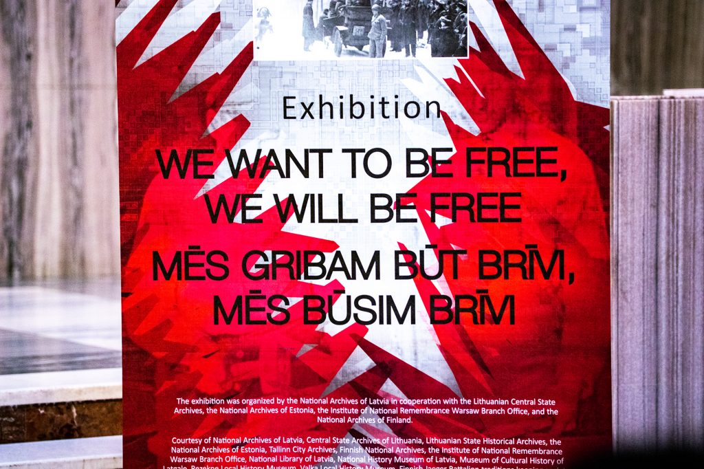 Výstava We want to be free, we will be free! vznikla ve spolupráci Lotyšského národního archivu, Litevského centrálního státního archivu, Estonského národního archivu, Ústavu národní paměti ve Varšavě, Finského národního archivu a dalších institucí k výročí 100 let od založení samostatného Lotyšska. Výstava je k vidění od 2. září do 4. října 2020 v Praze ve Slavnostní síni Národního památníku na Vítkově.