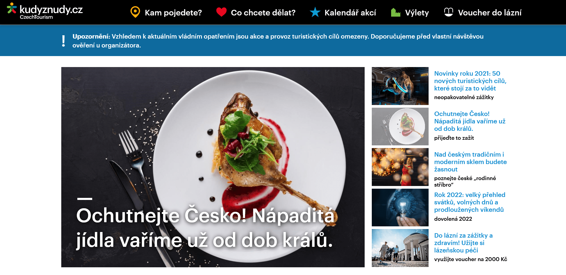Cestovatelský portál agentury CzechTourism www.kudyznudy.cz přitáhl v loňském roce historicky nejvyšší pozornost tuzemských cestovatelů a výletníků od svého spuštění v roce 2004.