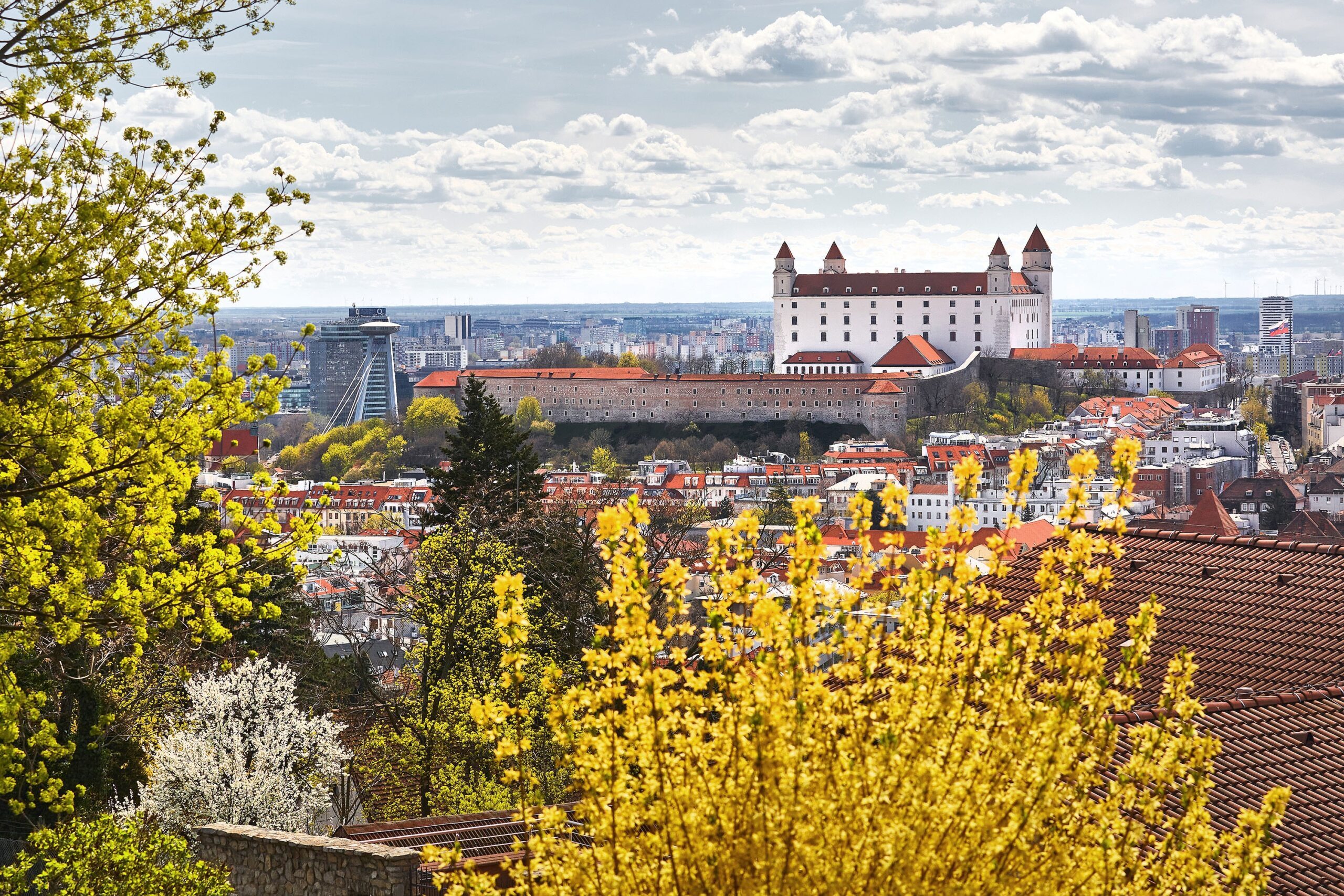 Dynamická slovenská metropole vás na první pohled vtáhne svými architektonickými kontrasty: vysokými hypermoderními mrakodrapy se světovou architekturou a historickým centrem z dob rakousko-uhorské monarchie. Začněte ji objevovat na terasách Bratislavského hradu s jeho čtyřmi typickým věžičkami a tvarem převráceného stolu.
