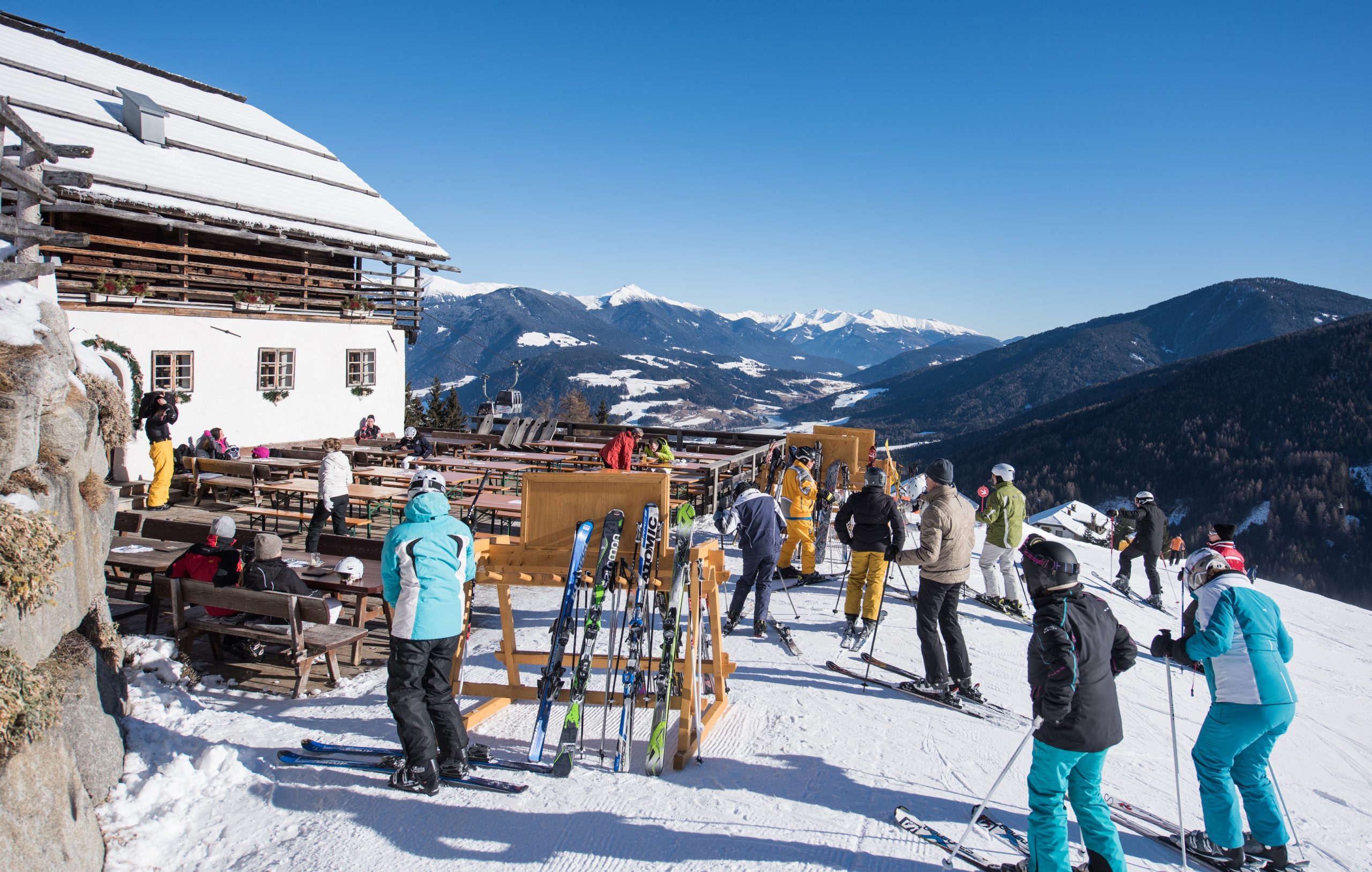 AlpiNN restaurant, Muzeum horské fotografie, zvon Concordia anebo Messnerovo Mountain Museum jsou poznávacími znaky jihotyrolského vrchu Kronplatzu. Ale atmosféru celé oblasti tvoří každodenní pohyb a švehol v méně nápadných tradičních staveních, jako třeba v salaši, kde najdete restauraci Oberegger Alm.