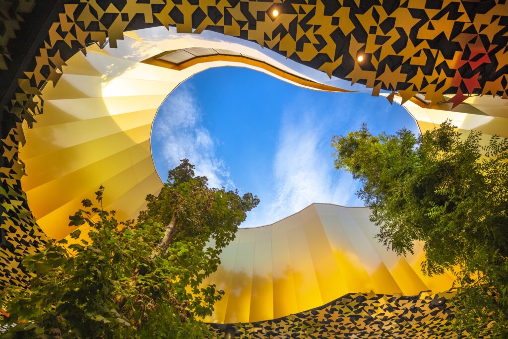 Zvlněná střecha organického tvaru s otvory a prosklené stěny dělají z této budovy jedinečnou vizuální dominantu. Dům hudby byl postaven na místě bývalého zchátralého a nevyužívaného kancelářského komplexu v srdci City Parku a proměnil tuto oblast ve špičkovou atrakci.
