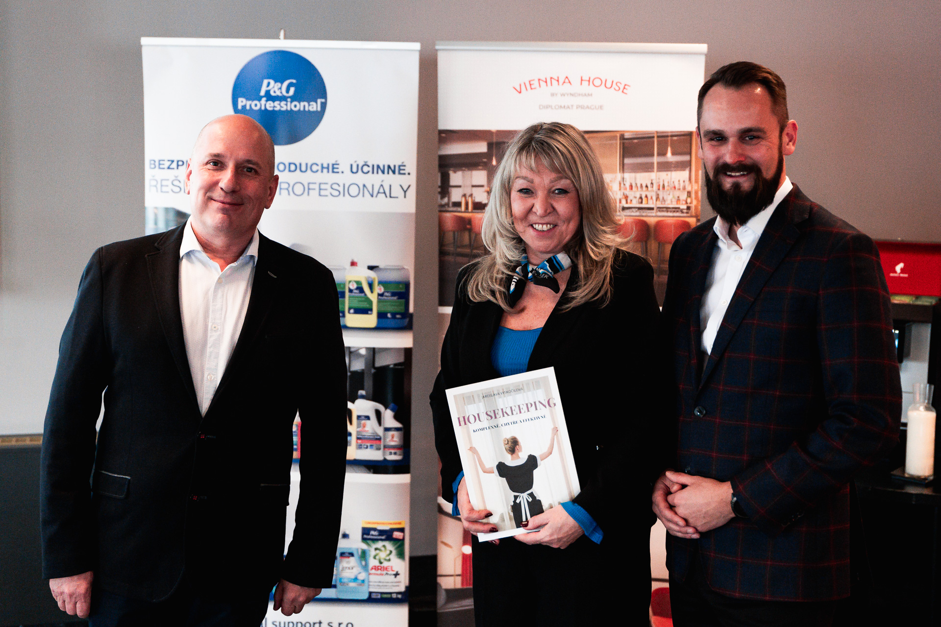Další důležitý partner společnost Professional support s. r. o. dodává řešení pro praní, úklid a mytí nádobí v profesionálních provozech a je přímým distribučním partnerem Procter & Gamble Professional ve střední Evropě. Dlouhodobě zákazníkům zlepšuje, zjednodušuje a zefektivňuje oblast praní, úklidu a čištění. „Naše firma má za cíl neustále pomáhat zákazníkům a jednou z cest je i jejich další vzdělávání a školení. Proto nás okamžitě zaujal projekt první odborné knihy o housekeepingu v České republice, protože z vlastní zkušenosti víme, jak je těžké získat pro pracovníky v této oblasti jakékoliv relevantní a praktické informace,“ říká Karel Matějka, strategic development director Professional support s. r. o., a dodává: „Z naší předchozí spolupráce s Jaroslavou Vyskočilovou jsme nepochybovali, že díky jejím mnohaletým praktickým zkušenostem, nezlomností a zápalu pro věc se kniha stane užitečným průvodcem a pomocníkem ve světě housekeepingu pro mnoho zaměstnanců. Proto jsme velmi rádi, že jsme se na přípravě knihy mohli sponzorsky podílet, a tím umožnit její vznik.“