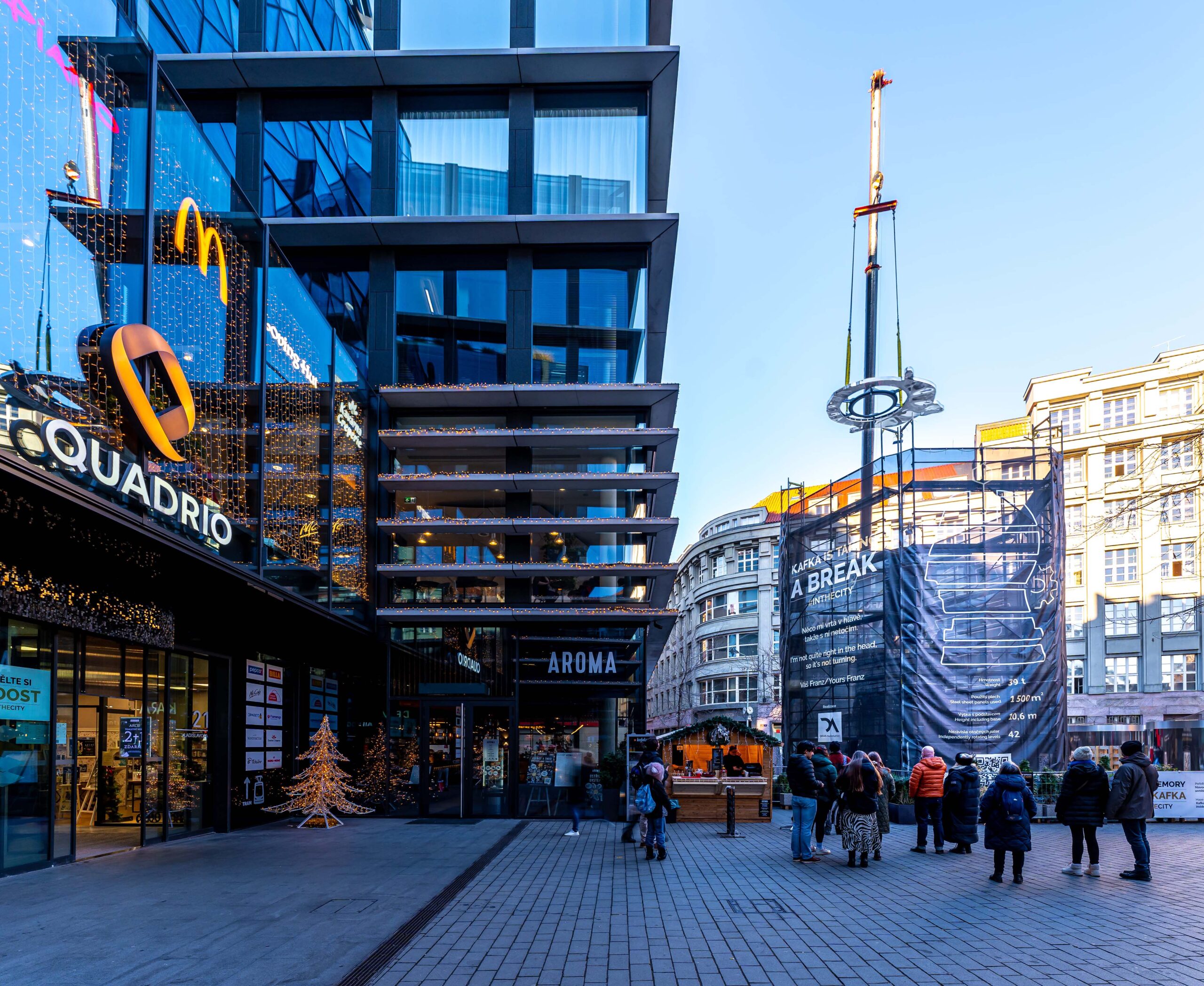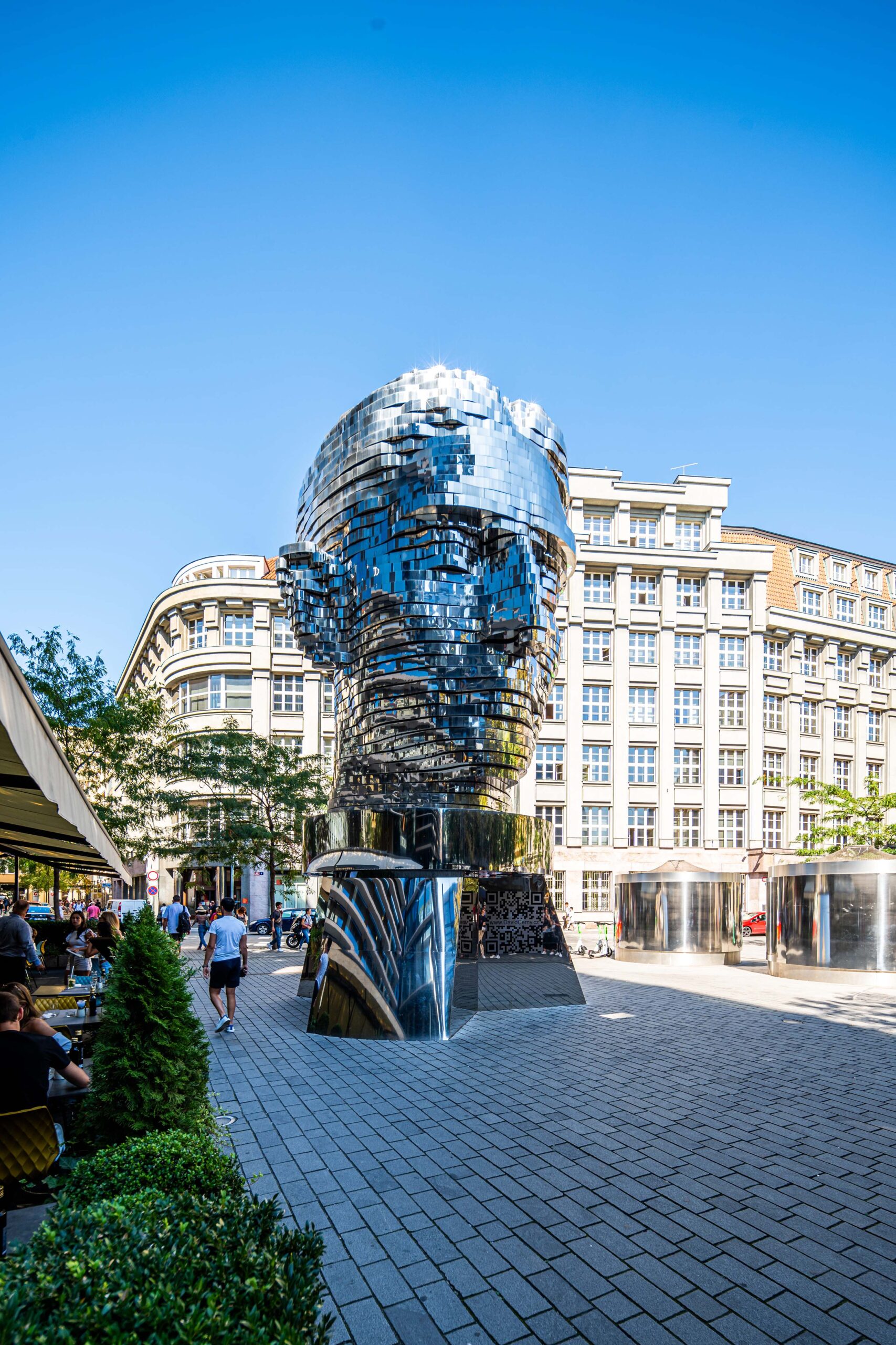 Hlava věhlasného spisovatele Franze Kafky se nachází před obchodním centrem Quadrio, kde byla slavnostně odhalena 31. října 2014. Jedná se o jedinečný umělecký výtvor spojující moderní mechanické technologie a tradiční českou řemeslnou zručnost. Stávající konstrukce využívá řešení známé z průmyslové automatizace a robotizace – uvnitř sochy se nachází 42 servopohonů a téměř kilometr kabelů. Zajímavostí je, že se nerezové panely otáčejí nezávisle na sobě, díky čemuž mohou kolemjdoucí obdivovat tvář proslulého spisovatele v rozmanitých grimasách.