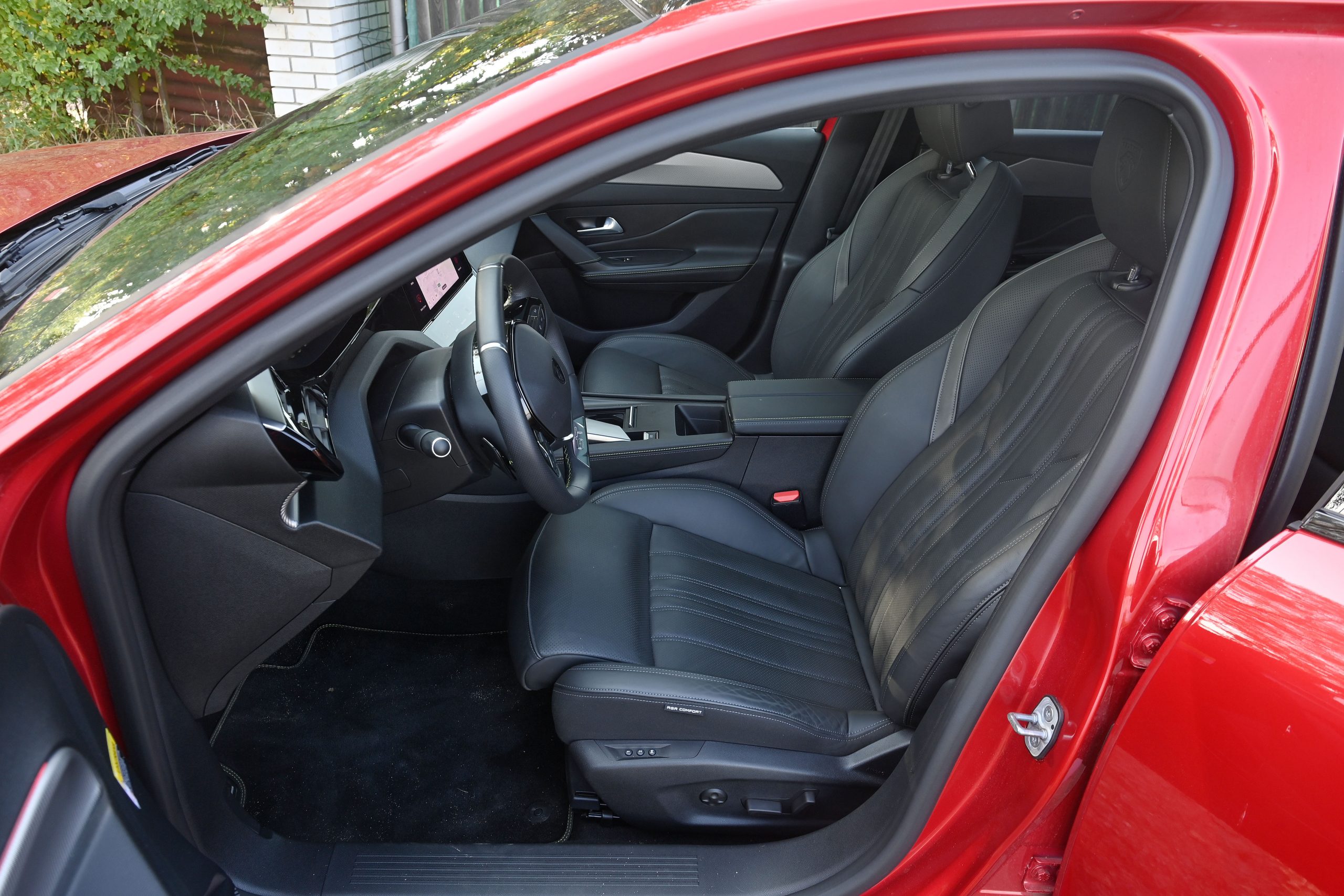 Sedadla jsou sportovnější, tedy se stabilním usazením. Vpředu se vyhřívají a obsahují pět masážních programů. Nastavit si můžete podle libosti deset směrů (a dvě polohy uložit do paměti). Nutno pečlivě ladit i vzhledem k poloze přístrojové desky i dlouhému středovému pruhu s přihrádkami, stojánky na kafe, dobíjecími USB porty a roletkou. Řidič má u loktů 1433 mm místa. Pocit vzdušnosti prostoru přidává střešní okno. Dozadu se vejdou tři lidé, ale prostřední místo nechte raději na pohodlnou opěrku, maximálně menší dítě.
