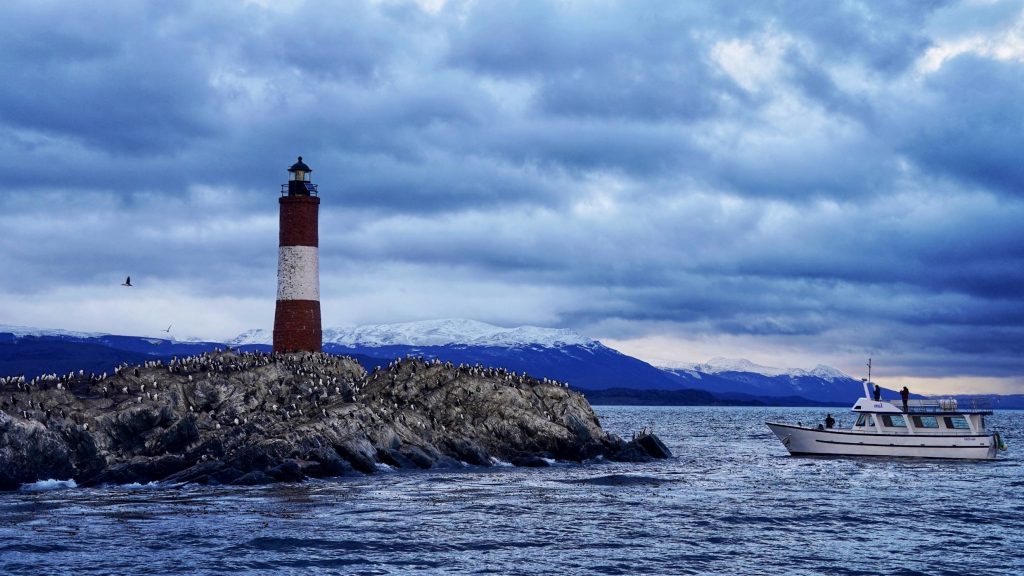 Dále na jih denně odplouvají lodě z přístavu Ushuaia, které se plaví po průlivu Beagle. Výlet zahrnuje Isla de los Pájaros (Ptačí ostrov), Isla de Lobos (Ostrov hřivnatých lachtanů) a slavný maják Les Eclaireurs, nejslavnější pohlednici Ushuaie. Ačkoli je obecně známý jako maják na konci světa, ve skutečnosti tomu tak není. Ten pravý se nachází na Ostrově stavů. Tato symbolická konstrukce byla vybudována na stejnojmenných ostrůvcích v průlivu Beagle. Tímto jménem je pokřtil kapitán Luis Fernando Martial z francouzské expedice, která dorazila do Ohňové země na palubě lodi La Romanche v roce 1882. Maják je zděný a představuje 11 metrů vysokou věž ve tvaru komolého kužele. V jeho horní části se nachází strážní prostor a věž je vymalována dvěma červenými pruhy a jedním bílým. Jeho provoz byl zahájen v roce 1920.