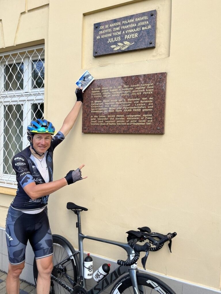 Julius Payer se narodil v Teplicích, a tak Daniel Polman po sestupu znovu sedl na kolo a vyrazil právě do města na severu Čech. Propojil tak úžasnou oblast v Jižním Tyrolsku, kde se tento mimořádný člověk proslavil, s jeho rodným městem. Cílem 652 km dlouhé cesty byl Payerův rodný dům a také pomník v nedalekém parku.