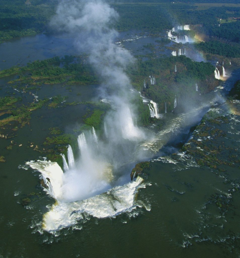 Vodopády vznikly sopečnou erupcí a od roku 1934 jsou součástí Národního parku Iguazú. Jsou komplexem 275 menších vodopádů a rozkládají se přímo v deštném pralese Selva Paranaense, ve vzdálenosti 17 kilometrů od ústí řeky Iguazú do řeky Paraná a současně místa, kde hraničí tři státy: Argentina, Brazílie a Paraguay. Dvě třetiny vodopádů se nacházejí na argentinské straně.