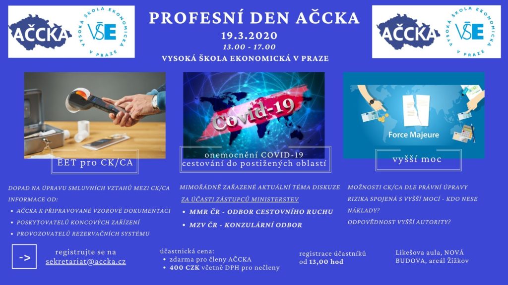 rádi bychom Vás pozvali na PROFESNÍ DEN AČCKA, který se uskuteční ve čtvrtek 19. března 2020 v čase 13:30–17:00 hod (pro členy AČCKA možnost až do 19:00 hod).