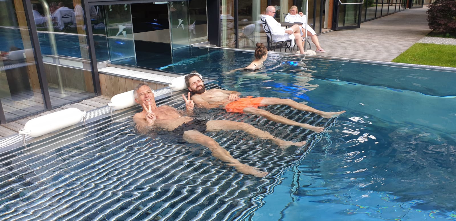 Nořím se do venkovní vířivky, objednávám místní šumivé do úzké sklenice a v mazlivé záři podvečerních slunečních paprsků se propadám do říše snů.