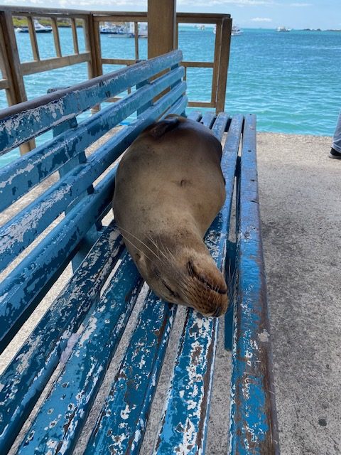 Ubytovali jsme se v hotelu v Puerto Ayora. Při vstupu do hotelu jsme se chránili, v restauraci do doby, než přinesli objednané jídlo, také. Vím, že je to možná nekomfortní, ale na Galapágách to bylo samozřejmé, nikoho to neobtěžovalo a potkali jsme zde několik Evropanů, co se vydali na výlet, který byl ještě exotičtější tím, že zde nebyly běžné zástupy turistů. Místní lidé v restauracích a ve službách obecně byli velmi milí a přátelští, nadšení, že vidí cizince. Všude k dispozici dezinfekce, před vstupem do restaurace či hotelu nám vždy změřili teplotu.