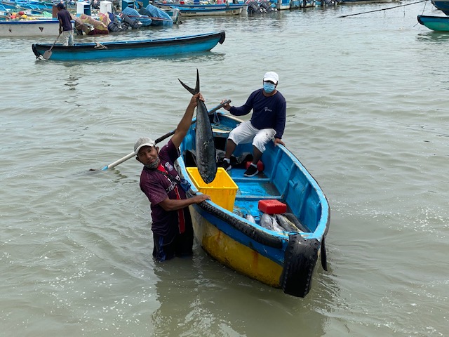 Za pár dnů jsme se přesunuli na západ od Guayaquilu. Plážový resort v Ekvádoru, pro odpočinkovou část zájezdu. Byl jsem zvědavý, jak to bude fungovat v hotelu. Překvapivě vše v naprostém normálu. Opět dezinfekce, měření teploty. Roušky ve veřejném prostoru, na pláži v klidu a v pohodě… Návštěva místních rybářských trhů. Představte si šrumec přístavu, rybáři vytahující své úlovky z malých bárek, a – světe, div se – i oni mají roušky. Jsou přátelští, nikdo nereptá.
