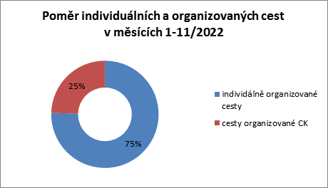 Srovnání 2019 versus 2022, příjezdová turistika leden–listopad 2022