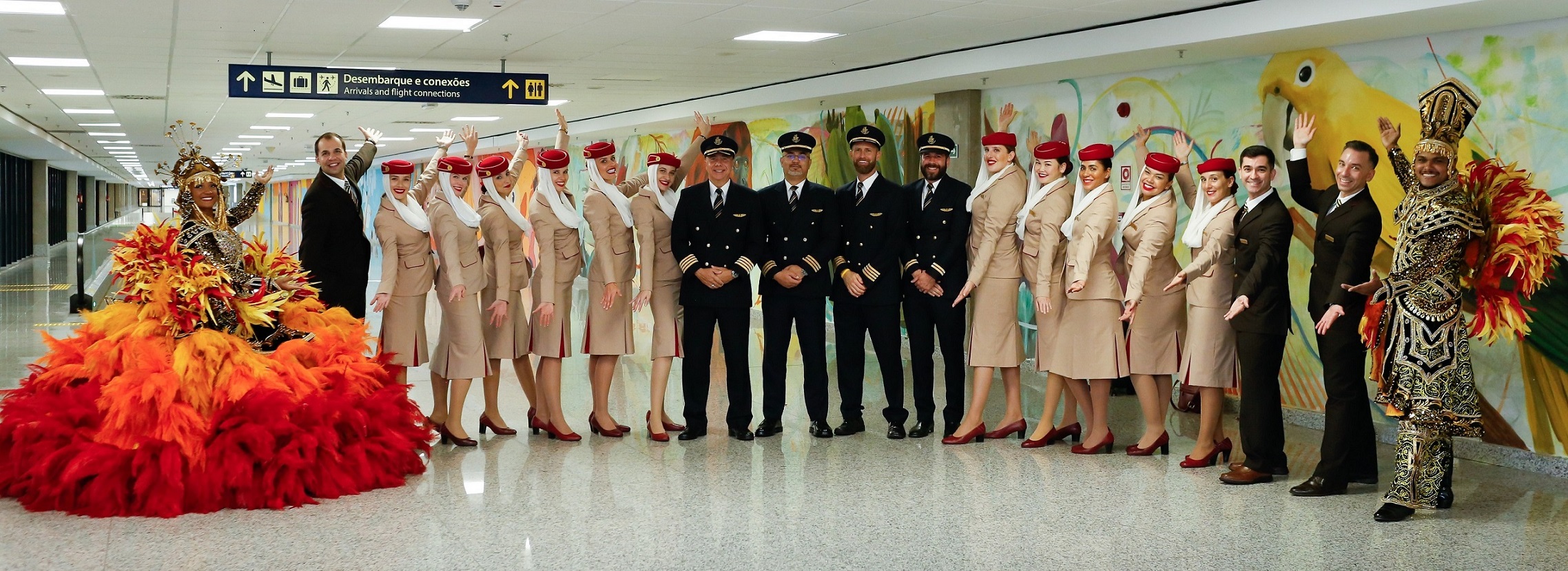 Let EK247 operovaný letounem Boeing 777 byl minulou středu vřele přivítán na své cestě do Brazílie a Argentiny. RIOgaleão v Riu de Janeiru uspořádalo u příležitosti návratu letecké společnosti do brazilského města tradiční salvu z vodních děl. Cestující a posádku přivítali tanečníci samby, kteří za přítomnosti vedení letiště předvedli tradiční kulturní vystoupení.