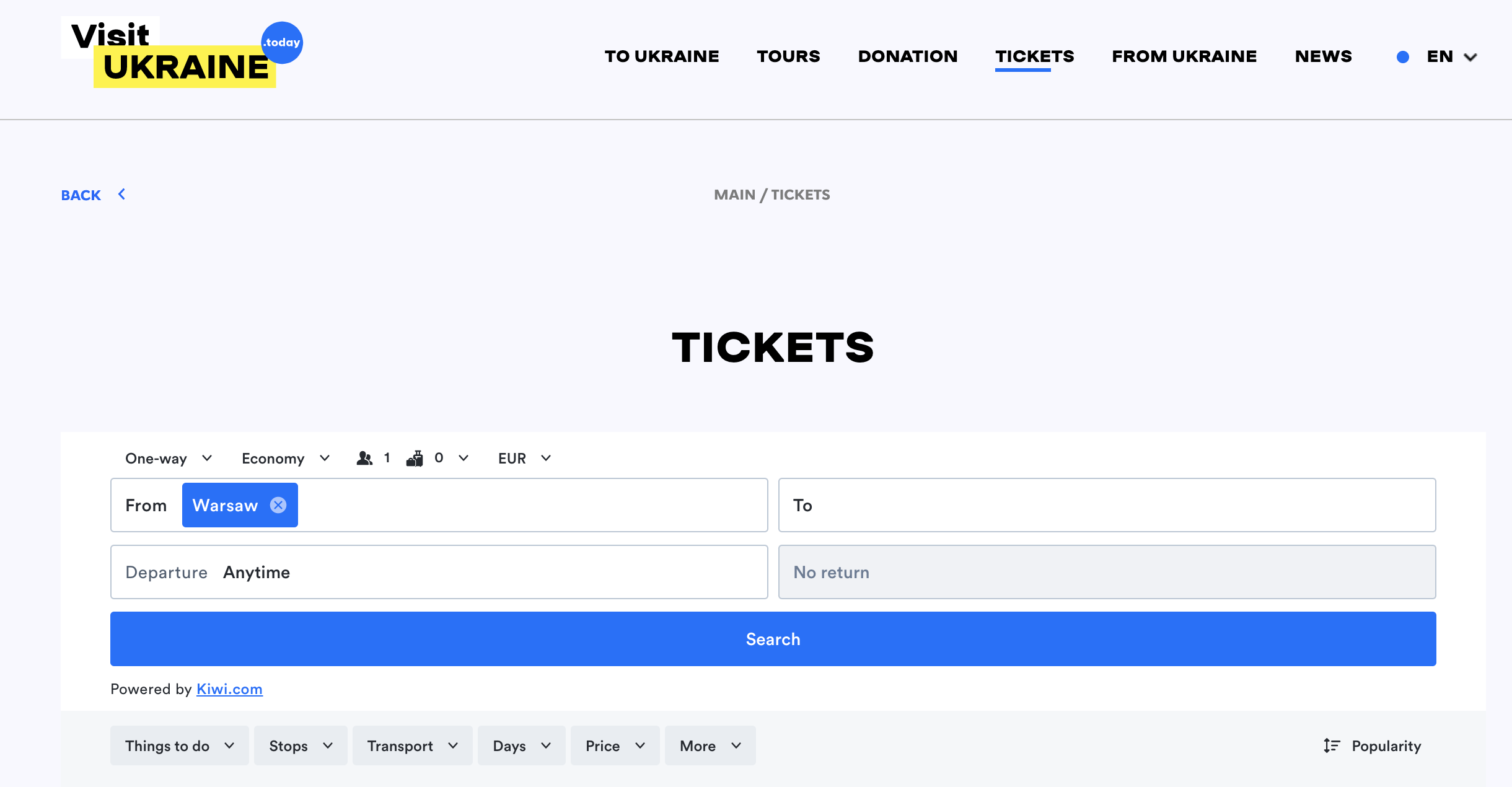 Platforma VisitUkraine je jediný ukrajinský webový portál, který poskytuje Ukrajincům i cizincům nejaktuálnější informace o cestovních požadavcích, omezeních, pojištění a také informuje o událostech probíhající války na Ukrajině. Díky virtuálně propojeným itinerářům Kiwi.com mohou nyní návštěvníci portálu VisitUkraine vyhledávat ta nejlepší spojení z libovolného botu A do bodu B, a to za nejvýhodnější dostupné ceny. Nákupem letenek prostřednictvím portálu VisitUkraine cestující současně podporují unikátní ukrajinský projekt.