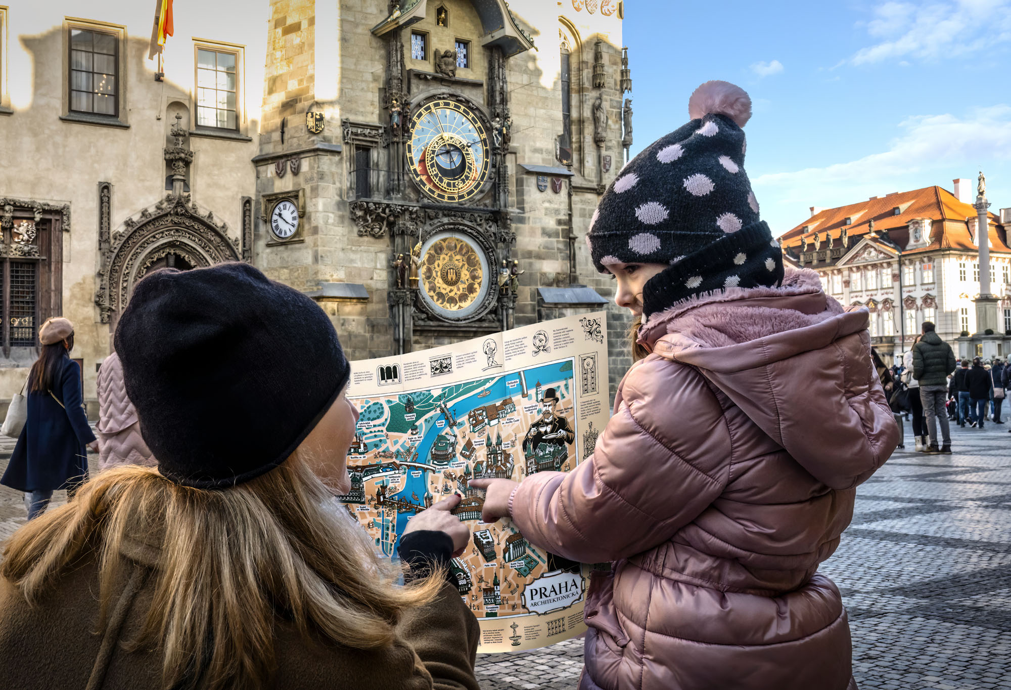 První z ilustrovaných map pro děti se zaměřuje na architektonické skvosty města v centru Prahy a popisuje jednotlivé slohy od gotiky až po secesi a kubismus. Druhá mapa se věnuje legendám a pověstem, kterými je Praha opředena. Děti se mohou projít pražskými zákoutími a přečíst si o nejslavnějších legendách, jako jsou ty o Golemovi či Faustově domě, i těch méně známých, jako je o uťaté ruce či závoji.