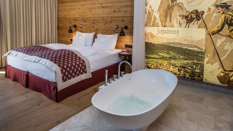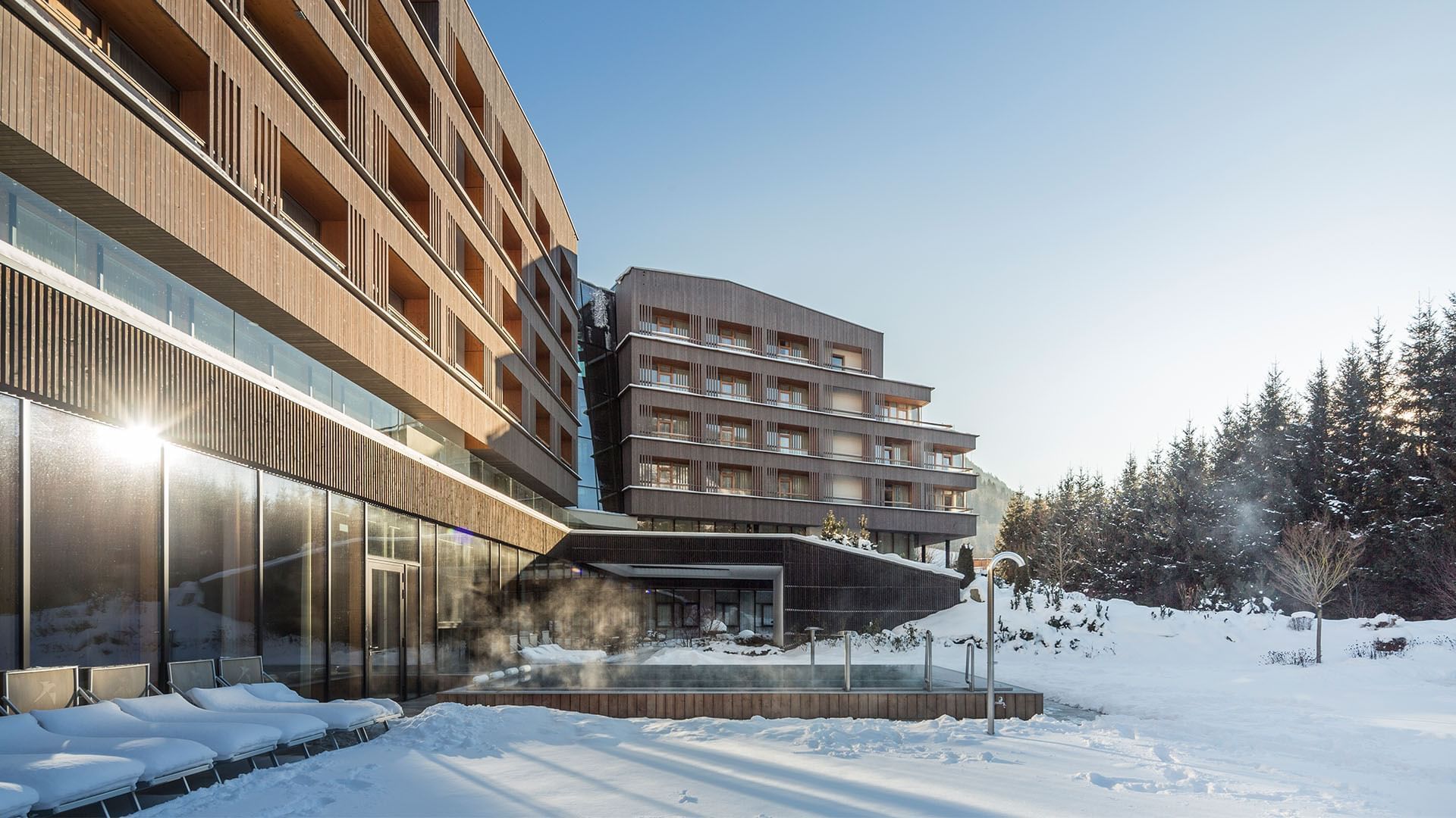 Ostatně cítit se v něm budete tak, jak hlásá heslo hned u vchodu: „Welcome home!“ Na první pohled zaujme jeho moderní architektura s alpskými akcenty z dílny známého studia Hohensinn Architektur, dřevěná fasáda, rozlehlé prosklené plochy s dokonalými výhledy i velkorysé terasy apartmánů. Nejluxusnější Dachstein suite zaujme krbem a koženým sofa, v Hochgolling suite najdete i efektně umístěnou vanu přímo uprostřed pokoje a také privátní saunu. Relax si ale užijí všichni hosté v rozlehlém Aquapura Spa (má 1500 m2) s vnějším i vnitřním bazénem, vířivkami, několika saunami i fitness centrem a masérským zázemím.