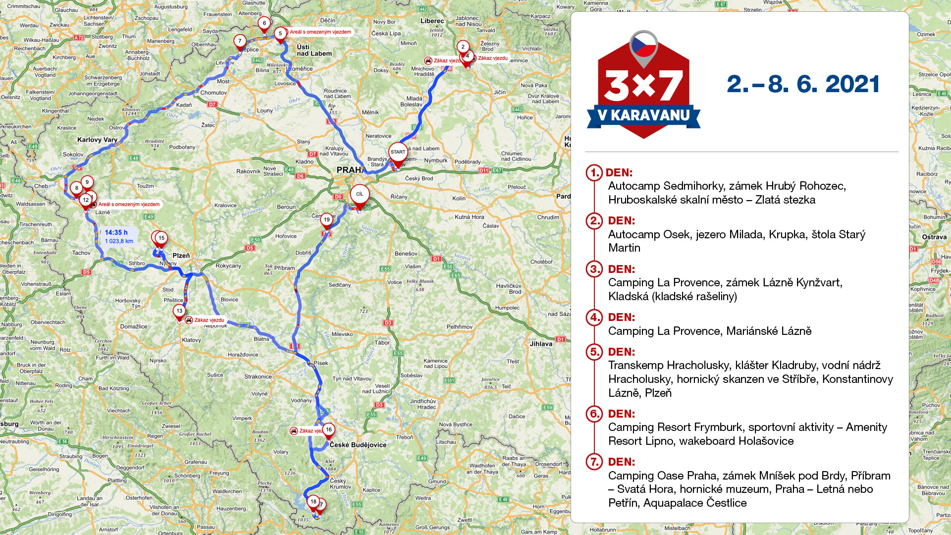 Plán první tour projektu 3×7 v karavanu po Česku s Klárou Hájek Velínskou